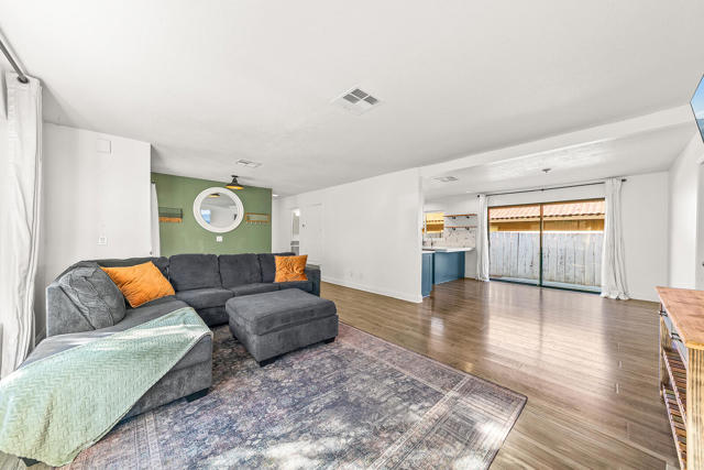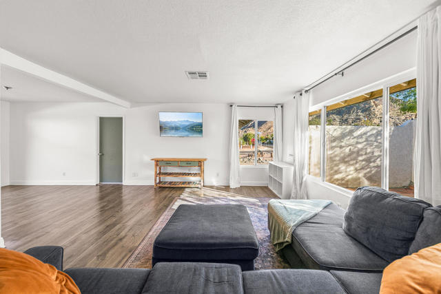 At the top of La Quinta Cove, your new home is waiting for you. With close-up panoramic mountain views, this home is perfect for outdoor enthusiasts. With four trailheads and Velasco Park in easy walking distance, families, hikers, cyclists, and runners have endless ways to explore and enjoy the outdoors. Looking for relaxed outdoor privacy or hosting friends and family, the Mediterranean-style courtyard and patio have you covered. Step through the front door onto your durable laminate flooring to find the most efficient Split floor plan, featuring 3 bedrooms and 2 bathrooms to the left and an open-concept living area to the right, all under your 1-year-old roof. Back into the 2-car garage to unload your groceries directly to your quartz kitchen countertops. Feel the cool air from your 6-month-old A/C system and don't feel guilty for using it with your 1-year-old solar system. Enjoy the 2-year-old water softening system protecting you and your home. All appliances included.