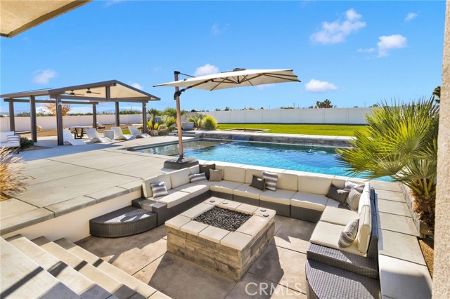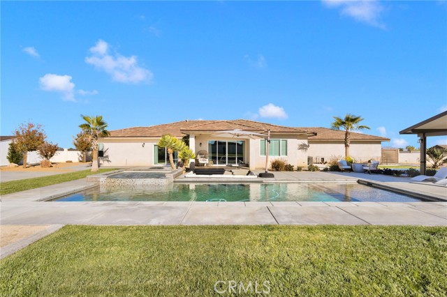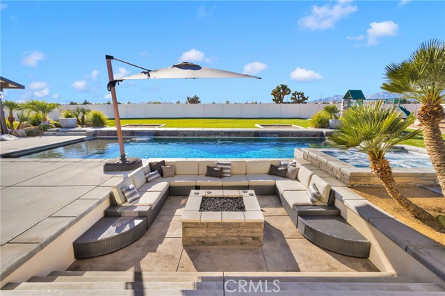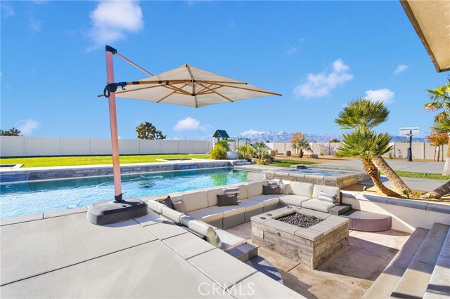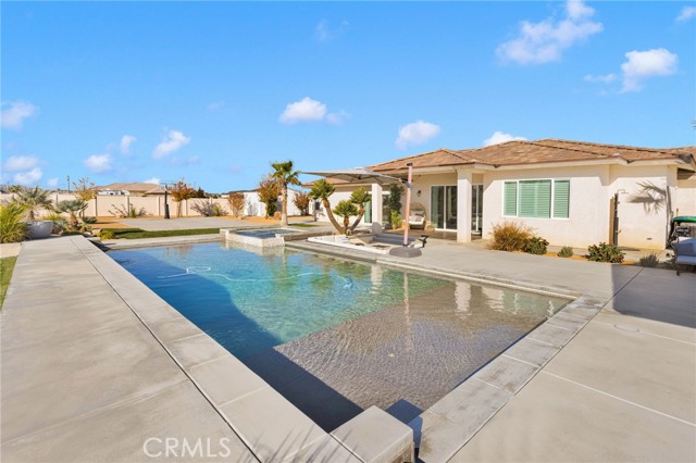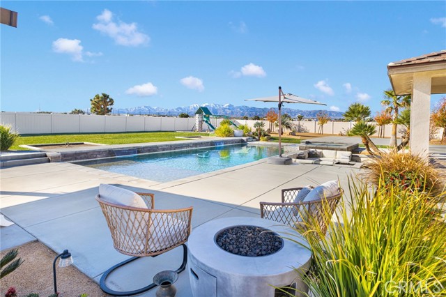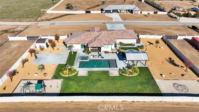 CUSTOM BUILT DONOVAN HOME-NEWER CONSTRUCTION-Inside, this home offers 4 bedrooms, 3.5 bathrooms, and a thoughtful layout that includes a Mother-In-Law suite, Main Master has His and Hers Closets with a Custom Organization and a Built in Secured Safe. Every bathroom features Custom-tiled showers, custom cabinetry and under cabinet lighting adding to the home’s luxury feel. The heart of the home is the Chef’s kitchen — complete with Commercial-Grade Built-in Appliances, Granite Countertops, a Large Center Island, Custom Cabinetry, Wine Refrigerator, Large Walk In Pantry, Stainless Steel Appliances and Under-Cabinet Lighting. The adjoining Great Room provides the perfect space for hosting and gathering and a beautiful Gas Fireplace. Entire home has Custom Shutters throughout. Step into your own Private Retreat featuring an incredible 40’ x 20’ HEATED V-BOTTOM PLAY POOL with a Swim-up Bar, Baja Shelf, Swim step, with an Oversized IN GROUND Spa. Entertain in the Sunken Lounge with Gas Fire Pit. The backyard is fully landscaped and designed for year-round enjoyment with an Alumawood Covered Patio ideal for a Full Outdoor Kitchen, Outdoor shower, Gas Fire Bowls, In-ground Trampoline, and a Park-like playground for the kids. The property is also plumbed for an Outdoor sauna, includes plumbing for Garden beds, Dog Run and a Large Storage Shed for all your extras. Vinyl fencing surrounds the pool for privacy, with chain-link securing the perimeter. The property offers an IMMACULATE Oversized FOUR CAR Garage with 10-ft lid and Epoxy Floor, OVERSIZED DRIVEWAY, Block Wall with Custom Iron Gates, and Multiple Secured areas throughout the lot. Sitting on over 2 Acres, property has Tons of Space for Vehicles, Toys, or Storage, a Block Wall with Custom Iron Gates, and Multiple Secured areas throughout the lot. Enjoy Views of the Wrightwood Mountains, Close to Shopping, ON PAVEMENT and located in the Snowline School District, approximately 1.5 Miles from Baldy Mesa Elementary School and Quail Valley Middle School.