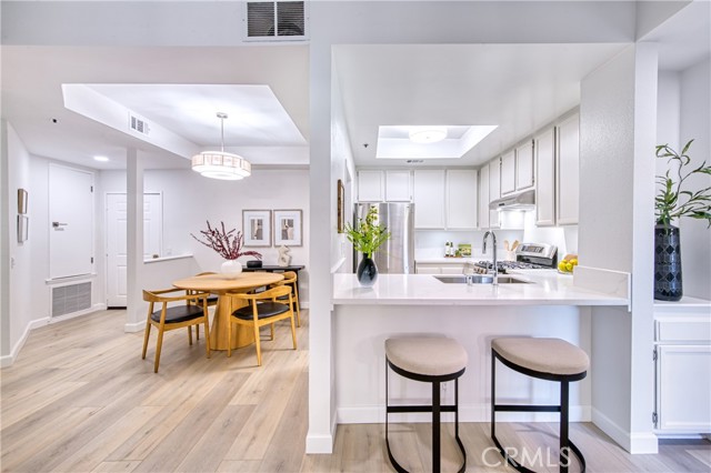 Move-in ready single-level condo located across the street from Cal Tech. This recently renovated unit was built in 1985 by noted local engineer/builder John Hedrick of JH Hedrick Company, who built mid-century style apartments, condominiums, and office buildings in California from San Diego to Santa Barbara. This secure and gated community offers well-maintained grounds with abundant mature trees, lush planters, a pool and spa, all focused around a main courtyard and pathway. Situated just north of a primarily residential neighborhood the location offers close proximity to California Institute of Technology, Pasadena City College, Polytechnic School, The Huntington Library, Art Museum, and Botanical Gardens, Grant Park, and some of Pasadena’s most attractive neighborhoods such as Rose Villa/Oakdale. This 2-bedroom and 2-bathroom unit is turnkey and comes with a private patio (approx. 200 SF) and two parking spaces in the secure resident garage, as well as in-unit laundry. Both bedrooms have walk-in closets and direct access to the private patio. The property blends functional design elements such as 9-foot ceilings, calming natural light, ample room sizes, luxury vinyl plank floors, and plentiful storage while offering a clean and contemporary aesthetic. The indoor-outdoor flow of this 1,104 SF (per LA County Assessor) one-level property make it feel larger than the SF number suggests. Light and bright, this unit recently underwent substantial cosmetic upgrades, including new interior paint, new recessed lighting, new light fixtures, and new plumbing fixtures. Other aspects of this property that will satisfy selective buyers include the beautiful wood-burning fireplace, serene private patio, three sliding glass doors, new quartz kitchen countertops, under-mount sink, and a recently installed new central HVAC system. This unit also comes with a stainless-steel refrigerator, dishwasher, and stove, as well as a stackable clothes washer and dryer. The Villa Corona HOA is an ideal community for its residents and offers a relaxing suburban vibe close to the hustle and bustle of Lake Avenue and Colorado Boulevard. The monthly HOA covers exterior maintenance, roof, water, trash, sewer, insurance for the HOA, secure pedestrian and garage gates, professional HOA management, and beautifully landscaped grounds. Whether you are looking for a wonderful starter home, a modern pied-a-terre, or a comfortable space during retirement, this unit can work for all buyers.