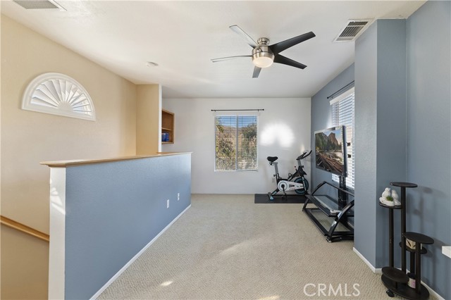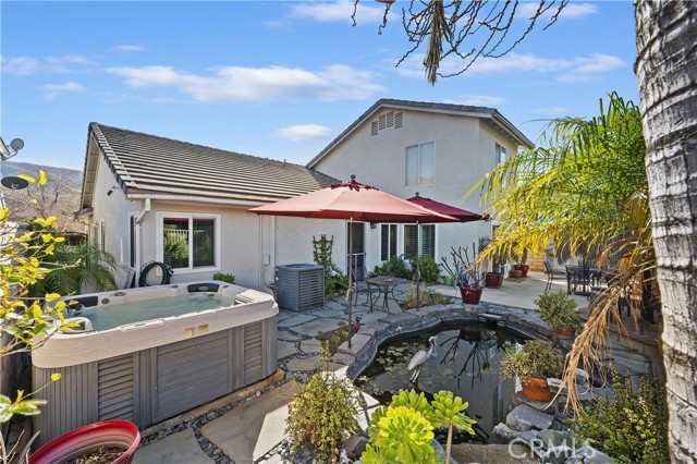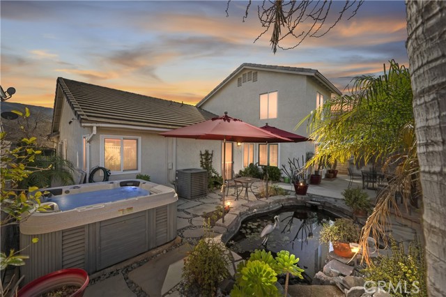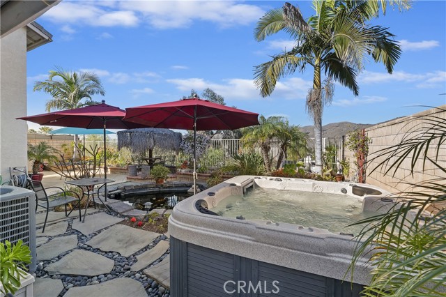 This meticulously maintained home sits on a beautiful view lot in the coveted Horsethief Canyon Ranch community. The home features 1575 square feet of open living space, featuring 4 bedrooms, 2 full bathrooms (3 of the bedrooms are on the first floor, including the Primary - and 1 bedroom is an upstairs loft. Tastefully upgraded, the kitchen has granite counters, stainless steel appliances, recessed lighting with an adjacent dining area on one side that opens to the family room with a cozy fireplace. The backyard is a tropical paradise that is elegantly landscaped with views of the surrounding mountains - all the while you can enjoy relaxation and privacy with your above ground spa and beautiful koi pond with 11 beautiful Koi in varying sizes - all located just off the primary bedroom. Another valuable feature of this home includes paid for solar, recent re-piping with Pex and tankless water heater. Horsethief Canyon Ranch is a master planned community nestled in the Cleveland National Forest, with the very best in amenities such as: Private Security, Fitness Center, 2 Community Pools/Spas, Tennis, Exercise Trail, Clubhouse, Dog Park, Ball Fields and much more - No Mello Roos and Very Low HOA for what is being offered. This home is a MUST SEE !!!!