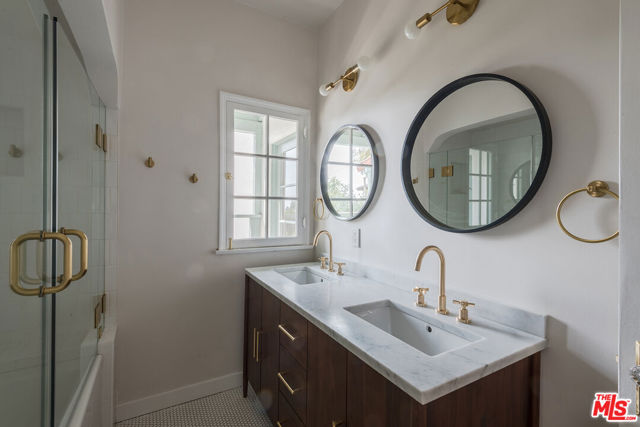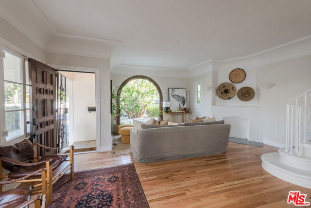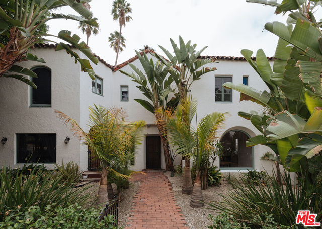 Stunning Old Hollywood Spanish home available for lease! Fabulous four bedroom, three bath townhome style duplex unit lives like a single family home with just one adjoining wall to the other unit on the property. Enter into the grand living room with high ceilings, moldings, arched window, decorative fireplace and new hardwood floors. A formal dining room leads into a fully updated kitchen with stainless appliances, brass fittings and plenty of cabinet space, along with a full laundry room. A bright bedroom and full bathroom round out the lower level. Upstairs, find two more light filled bedrooms and a full hall bath, along with a large primary bedroom suite. All the upstairs bedrooms have gorgeous original "wedding cake" plaster wall details from the 1920s along with ample closet space, and two have private balconies. Outside, there is a shared backyard along with two single car garages and a third assigned parking space. All this just moments from Runyon Canyon and all the dining, nightlife, and shopping that Hollywood and WeHo have to offer. Available for late January move in.