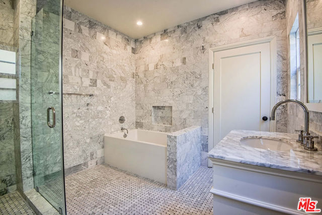 Completely remodeled, in classic taste, 4 bed + 3.5 bath Hancock Park lower duplex unit on tree lined Orange Ave. Spacious large living room with decorative fireplace is bathed in sunshine and opens to the dining room, perfect for entertaining. Fully renovated kitchen with center island, stainless steel appliances, marble counters, abundant storage, adjacent breakfast room + laundry room. Primary suite with walk-in closet, marble bath with both shower and tub. 3 additional bedrooms, all with adjacent or ensuite bathrooms. Separate walkway for both the upstairs and the downstairs units for privacy. Front porch belongs to downstairs tenant and backyard + driveway is shared by both tenants. Small pets ok! Hardwood floors, central AC/heat. No garage included with the rental. Amazing location close to shops, restaurants, places of worship, etc. Easy to show!