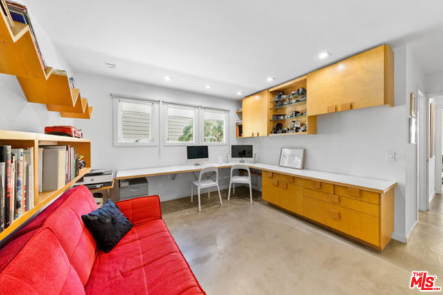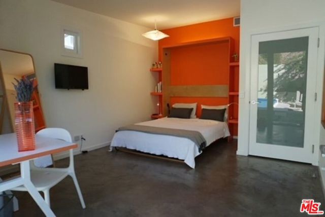 AVAILABLE MARCH 1st, 2026 | A one-story, Mid-Century Modern Home located in Malibu, minutes from the beach and the Paul Getty Villa. The front walkway, a twisting pathway, leads you to the front door. The front yard is landscaped with exotic cactus plants. This house offers 3 bedrooms, 3.5 bathrooms, and a den. An open floor plan that connects the Living room, dining room, den, and kitchen to the back yard and the side yard. There are Concrete floors throughout the house. A bright house that offers floor-to-ceiling glass doors and skylights. Minimal, modern furnishings to evoke a sense of space. The kitchen has walnut cabinets with Blue walls, a Viking oven, and Carrara marble countertops, with plenty of counter space for preparing food and cooking. The kitchen opens up to the side yard with a seating area, a water fountain, and an outdoor gas oven/BBQ. The den/TV room is open to the kitchen. The primary Bedroom features high ceilings, glass walls, and a queen-size bed. The main bathroom includes a white oval bathtub and a white shower stall with a steam bath. The dual sink Mahogany cabinets create a mid-century vibe. A private patio with an ornamental wall is in front of the primary bedroom, featuring beautiful landscaping and a hammock for relaxation and to enjoy the sounds of the birds, offering complete privacy. There are two additional bedroom suites. One of the rooms is being used as an office with bookshelves and a long desk. The sofa bed in this room turns into a full bed. The third-bedroom suite features a queen bed and a full bathroom, opening to the backyard with beautiful landscaping, mountain views, and an Endless pool for swimmers. There is an emergency generator that, upon power failure, automatically starts and powers the home to full capacity indefinitely.