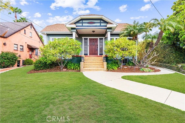 Perched above the street on one of Uptown Whittier’s desirable view-lined blocks, this 1923 Craftsman bungalow pairs historic charm with modern livability. Recognized by the Whittier Beautification Awards and showcased in city events, the home stands out immediately with its inviting front porch—an incredible spot to take in sweeping vistas stretching across Los Angeles and Orange Counties. Inside, the home unfolds with warmth and character. Hardwood floors, preserved stained glass windows, and classic Craftsman details anchor the main living areas. The updated kitchen blends vintage style with contemporary touches, offering stainless steel appliances, a farmhouse sink, built-ins, and a cozy breakfast nook. The floor plan includes four well-appointed bedrooms and two bathrooms, with the upstairs suite enjoying abundant natural light thanks to a thoughtfully designed skylight feature. A standout of the property is the expansive bonus room at the rear of the home. With its high ceilings and generous footprint, it has inspired countless ideas from visitors—whether as a studio, creative workspace, media room, or potential separate living area. The detached two-car garage offers similar possibilities, especially with its refreshed roof and clean structure, making it an appealing candidate for a future workshop or conversion project. The home has also benefited from a series of meaningful upgrades completed in 2024 and 2025. Recent improvements include newly installed drainage and sewer lines, updated AC ducting, comprehensive pest management, a replaced garage roof, and a serviced above-ground spa fitted with a brand new custom cover. These updates bring confidence and comfort to the home’s next chapter. Surrounded by mature landscaping and located just moments from Uptown’s restaurants, shops, and the Whittier Greenway Trail, this home offers a rare blend of history, character, views, and potential—all in one of Whittier’s most vibrant neighborhoods.