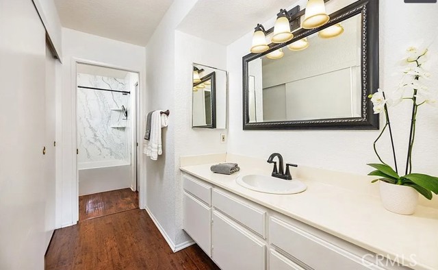 Corner Unit Single-Level Condo that has been beautifully maintained a perfect blend of comfort, convenience, and California charm! Step inside and experience an inviting open layout highlighted by stylish laminate flooring and an abundance of natural light that flows throughout the home. The spacious living room offers the ideal space to relax or entertain, featuring a charming brick-surround fireplace complete with a classic mantle perfect for cozy evenings or displaying your favorite decor. Adjacent to the living area, the dining space is designed for gatherings both large and small. It includes a versatile bar-top seating area, ideal for casual meals or mingling with guests while cooking. The kitchen is both functional and welcoming, offering durable tile countertops, ample cabinet storage, and a layout that encourages creativity for any home chef. Continue down the hallway to find a dedicated laundry area with extra storage a rare and convenient feature in condo living. The generously sized primary bedroom offers a peaceful retreat, complemented by a beautifully remodeled bathroom that exudes modern elegance. Enjoy the best of outdoor living with a spacious front patio perfect for basking in the Southern California sunshine, hosting summer barbecues, or simply unwinding at the end of the day. Additional features include central air conditioning, recessed lighting in the kitchen, a designated carport space, and in-unit laundry for added ease. As part of a well-maintained community, residents also enjoy access to resort-style amenities including a sparkling swimming pool and rejuvenating spa perfect for relaxing on warm afternoons. Located in a prime area of Orange County, this home offers unbeatable convenience with proximity to top-rated schools, shopping centers, dining options, parks, and major freeways making commuting a breeze and weekend adventures effortless. Don't miss your chance to own this exceptional home that truly has it all.