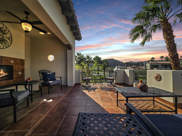 Experience true resort-style living in the heart of La Quinta! From the charming front courtyard to the breathtaking upstairs view patio, this thoughtfully designed home seamlessly blends indoor and outdoor desert living. Nearly 3,000 sq. ft. of refined luxury awaits in this beautifully upgraded 3-bedroom, 4-bath home with an open, flowing layout ideal for everyday living and sophisticated entertaining. High ceilings, rich architectural details, and abundant natural light enhance the spacious great room, gourmet kitchen, and inviting dining areas. The chef's kitchen boasts a large center island, premium finishes, and effortless connection to the main living space.Retreat to the private primary suite featuring a spa-inspired bath, generous wardrobe space, bonus craft room, and direct access to the backyard oasis. The ensuite bathroom offers a jetted soaking tub, dual vanities, and a separate shower.Outdoors, the resort-style pool and spa are framed by mountain views and tranquil privacy. Enjoy two distinct patio spaces--each with its own fireplace--perfect for relaxing evenings or weekend gatherings.Upstairs, a bonus retreat provides flexible living with room for lounging, dining, or gaming, complete with a wet bar. The space opens to a scenic patio overlooking southwestern skies, showcasing breathtaking sunsets and colorful dusk views.A detached casita with its own mini bar offers the ideal setup for weekend guests.Set within a quaint, gated community just minutes from world-class golf, hiking, dining, and shopping, this turnkey, furnished home delivers the full desert lifestyle: luxury, beauty, and effortless indoor-outdoor living.