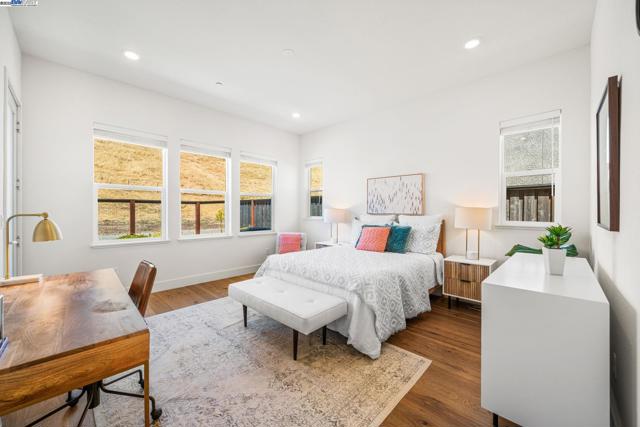 Welcome to your dream home located at The Preserve in the rolling hills of San Ramon! This stunning, 2021 built Lennar home is perfectly positioned in a cul-de-sac with no rear neighbors, offering open space, privacy, and scenic views. Inside, you’ll find a modern open-concept layout with soaring ceilings and an abundance of natural light. The chef’s kitchen is the heart of the home, featuring a large island, quartz countertops, crisp white cabinetry, GE stainless steel appliances, a gas cooktop, double ovens, and a spacious walk-in pantry—perfect for entertaining and everyday living. The main level includes a luxurious primary suite with hillside views, a spa-like bathroom, and walk-in closet. A second bedroom and full bath on the first floor add flexibility for guests, in-laws, or a home office. Upstairs, a large loft offers endless possibilities—ideal for a media room, office, gym, or play area—along with two additional bedrooms and a full bathroom. Owned solar saves electrical bills. The Preserve offers resort-style living with exclusive amenities: clubhouse, pool, parks, trails, and a recreation center. Conveniently located near award-winning schools, San Ramon City Center, shopping, 680, Downtown Danville, Whole Foods, Target and so much more! Welcome Home!