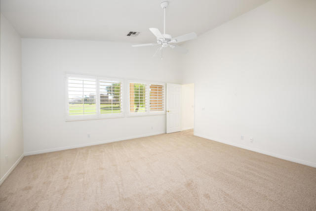 The good life awaits you in this 1,981 sf, 3-bedroom, 3-bathroom fairway home with an extended patio looking over the 8th fairway of the Big Rock Golf Course at Indian Springs. This Manhattan layout is popular for its rotunda entrance, spacious kitchen, and open great room. The primary suite is positioned on the rear of the home for privacy and a rear-yard view, with the primary bath offering dual vanities, a jetted bath tub, and a walk-in shower. The 2 additional bedrooms are located on the front of the home courtyard views, and the 3rd bedroom is a guest casita with a private courtyard entrance. Indian Springs is a popular neighborhood for its great location near La Quinta's 111 shopping district and 3 great schools that include La Quinta High School. Big Rock offers great food, entertainment, and golf at reasonable prices. Rent includes HOA-provided DirectTV & WiFi Internet service, landscape service, and use of comminty swimming pools, hot tubs, and fitness centers. Be sure to view the 3D VR Tour and to schedule a private showing of this home and the good life at Indian Springs! Small pets will be considered per approval and additional cost.