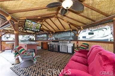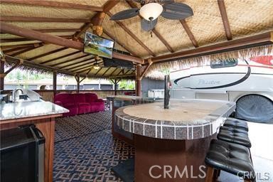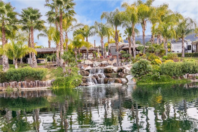 Oversized Palapa lot on quiet street. The view from the lot is overlooking one of the Streams with lots of Grassy room to play outside. Palapa build out has large living area and custom Fire Island w/blue glass beads and tempered glass w/ built in chopping block and three ceiling fans to keep you cool. Wine Fridge, 32"& 50" TV, small freezer & 6 ft stainless steel BBQ under 600 sq ft new synthetic thatch roof. It is close to the front gate with association pool, pickleball courts, 15th hole Missy's Cafe, the market and the gym. Included in Rancho California RV Resort is a 14 hole Executive Golf Course that is free for owners, 5 Pools and Jacuzzi areas, Tennis Courts, Pickle Ball Courts, Laundry Rooms, Dog Park, Horse Shoe Lawn, Club House, Hiking Trails, all inside Gated Community that is Guarded 24/7. Allowed on the property are 5th wheels or Class A rigs. You can live here or rent your space. Peace and quiet serenity all just 25 minutes from Temecula Wine Country. No age restrictions. Come on over and check this hidden gem of a place out. Financing Avaialable......