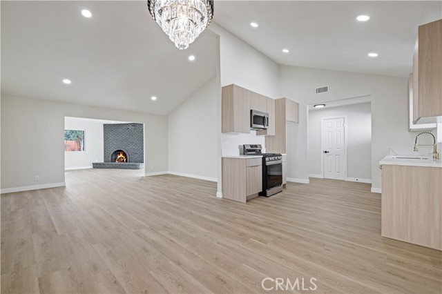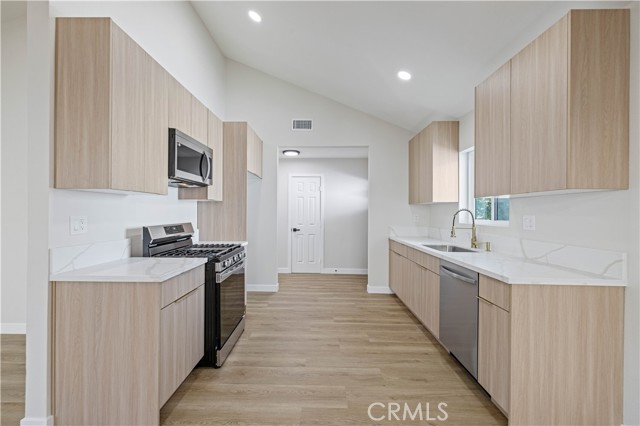 Experience modern comfort and elevated design at 22038 Alamogordo Rd, a beautifully remodeled 4-bedroom, 2-bathroom home located in one of Saugus’ most desirable and safest neighborhoods. Offering 1,522 sq ft of upgraded living space on a 5,963 sq ft lot, this residence delivers exceptional style, convenience, and value — all under $800,000. Step inside to an inviting open floor plan featuring new flooring, dual-pane windows, and a cohesive modern aestheticthroughout. The stunning white oak kitchen serves as the heart of the home, showcasing quartz countertops, sleek cabinetry, premium appliances, and warm natural finishes that elevate the entire space. Both bathrooms have been thoughtfully reimagined with white oak cabinetry, designer tile, and gold modern fixtures, bringing a spa-like touch to everyday living. Four well-sized bedrooms offer comfort and versatility, ideal for families, guests, or work-from-home needs. Outside, the property shines with new landscaping, including lush natural grass in the front and low-maintenance turf in the backyard, perfect for relaxing or entertaining. The brand-new paved driveway adds curb appeal and functionality, complementing the home’s refreshed exterior and modern upgrades. With its stylish finishes, family-friendly layout, and unbeatable location, 22038 Alamogordo Rd is the perfect blend of modern living, value, and safety in the heart of Saugus.