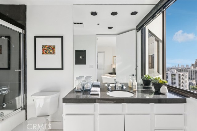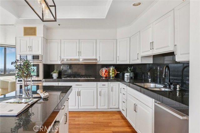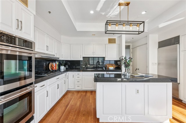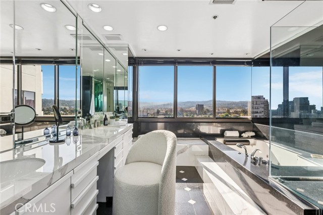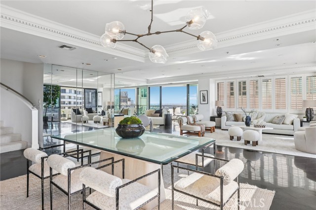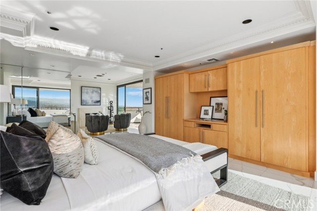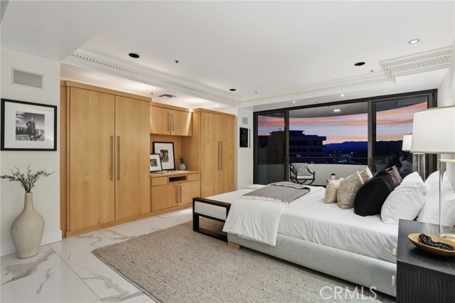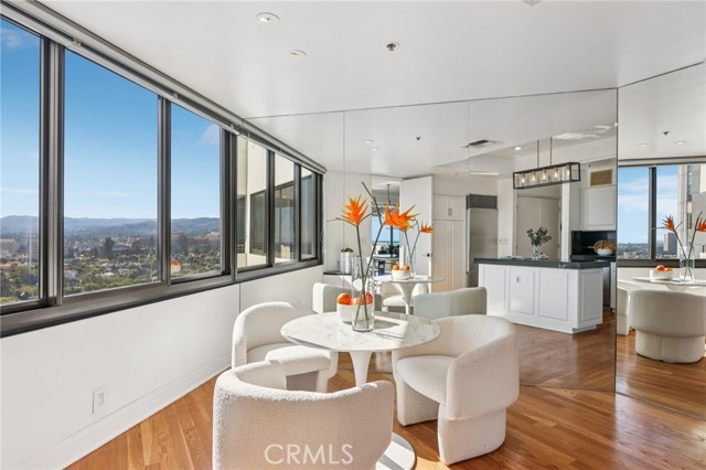 Two Floors. Four Terraces. One Seriously Iconic Residence! Welcome to your sky-high sanctuary at TEN-FIVE-SIXTY—Wilshire Corridor’s crown jewel. This rare two-story corner residence soars above the city on the 18th and 19th floors, capturing sweeping views from the ocean to the hills and everything in between. Inside, it’s a home designed to impress and decompress. Think: open-concept living with 9-foot ceilings, walls of glass, hardwood and stone finishes, and not one but four private terraces. Entertain with ease thanks to a full bar, multiple lounging/dining zones, and a kitchen that more than rises to the occasion—complete with granite counters, built-in Sub-Zero fridge, double oven, wine fridge, breakfast nook, and yet another incredible view to enjoy while you cook, sip, or simply admire. A powder room adds convenience, while a statement staircase delivers the wow factor all the way upstairs. And speaking of upstairs: the primary suite redefines “retreat” with a fireplace lounge, oversized walk-in closet, spa-style bath, and two more terraces—because, why not? The second bedroom with en-suite bath is perfect for guests, a home office, or both. Porcelain tile floors add polish and durability throughout the upper level. Of course, life at TEN-FIVE-SIXTY comes with all the perks you’d expect from a premier Wilshire high-rise—and then a few you didn’t. From 24/7 concierge service to the entertainer’s lounge, pool, spa, gym, and even a caterer’s kitchen for hosting your next big moment. And here’s the game-changer: 24-hour valet means you’ll never have to park (or fetch) your own car again. Think hotel-style living—with the comfort of calling it home. Homes like this rarely come to market—and when they do, they don’t stick around. So if you’ve been waiting for a sign to live above it all… this is it.