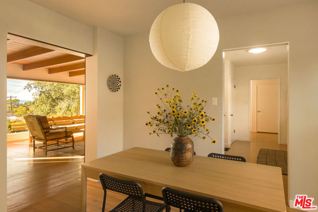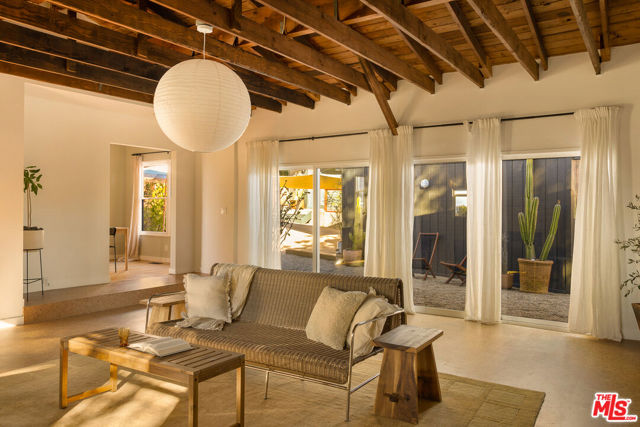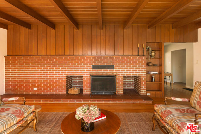 Against the dusty-pink foothills of the Angeles National Forest, 10816 Redmont invites you to slow down, breathe deeply, and settle into a different rhythm. Built in 1952, this midcentury ranch is a joyful blend of craftsmanship and modern comfort. A pathway beneath a shady oak tree leads to the custom front door. At the entrance, a stained glass catches the light and invites you into the sun-drenched living room with a full brick fireplace, warm wood paneling and beams. An oversized picture window frames sunsets over the valley. The updated kitchen glows with morning light, centered by a vintage Wedgewood stove. Cork flooring, newer appliances and countertops, and a walk-in pantry elevate the original charm into something fully functional for modern living. Weekend breakfasts, late-night conversations, impromptu dinners, everything fits here with ease. Bedrooms offer calm, grounded retreats, each with generous closets and foothill views from every window. A second living space has the potential to function as private primary suite with its own full bath. Raised ceilings and exposed beams, a wall of sliding doors, and a second fireplace invite cozy nights in watching a movie or gatherings that stretch late into the evening. Outside, terraced spaces are ready for gardening, lounging, and hosting summer BBQs. Whether you're tending herbs and planting California natives from Theodore Payne, reading in the hammock, or watching the mountains change colors at dusk, life here moves at a different pace. And yet, you're close to everything. Minutes to Montrose, Pasadena, and the buzz of Northeast LA. Thoughtfully updated to honor the home's character, recent improvements include new AC system (2025), dual pane and casement windows (2024), remodeled bathrooms, designer lighting and paint, newer appliances, paid in full solar, drip irrigation and native landscaping. A soulful midcentury offering, ready for its next chapter.