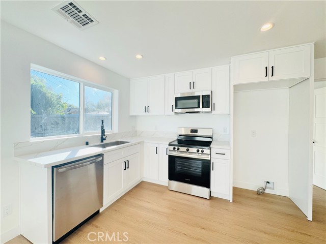 New construction and all new appliances, ready For Lease! This property features four new beautiful builds, and this three bedroom three bath is the Main House. One bedroom and bathroom is conveniently located on the first floor. Each unit has its own yard space with turf, private entry, and this unit has the space for two cars to park on site behind the back gate. 6860 Aura is a light and bright home totaling 1279 Sqft. This spacious property showcases modern exteriors, *paid-off solar panels*, high ceilings, recessed lighting, brand-new plumbing, electrical, sewer lines, HVAC systems, roof, smooth stucco and landscaping. Interior features stainless steel appliances, new floors, new hardware, durable new doors, double-pane windows, walk-in closets, and an open floor plan. Each unit features its own separate electric meter, separate washer & dryer hook ups, and private entries. The back units are also equipped with top-of-the-line Rheem electric water heaters, plus they have both front and back alley access. Don’t miss your chance to rent of of these exceptional units in one of Reseda’s most desirable neighborhoods. Property is located near restaurants, shopping, and public transportation. This one will go fast, schedule your appointment today!