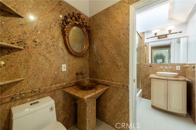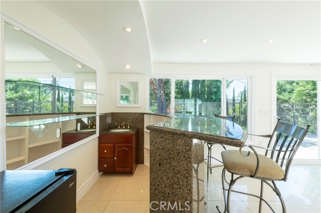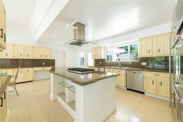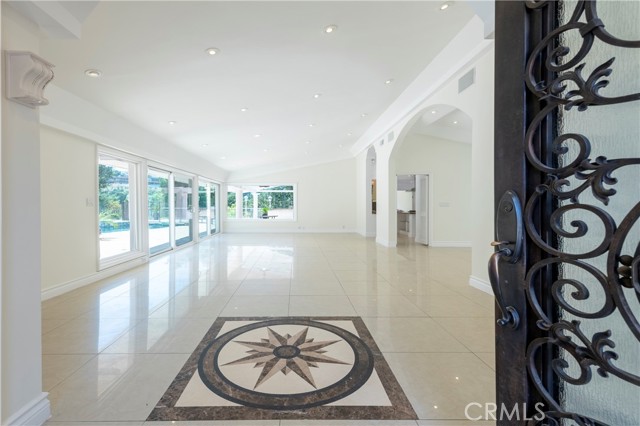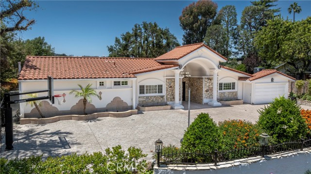 This exquisite single-story Spanish estate blends timeless elegance with modern sophistication. Set back from the street behind a private gate, the home welcomes you with a dramatic double-door entry that sets the tone for the refined interiors beyond. Inside, classic arched doorways, artisanal tile floors, and expansive walls of glass create a luminous ambiance, framing picturesque views of the lush backyard sanctuary and a serene courtyard. Three spacious bedrooms and three well-appointed baths and a versatile den offers the perfect option for a fourth bedroom, home office, or creative space. Designed for effortless living and entertaining, the generous common areas include a refined dining room with a built-in wine fridge, a warm and inviting family room centered around a statement fireplace, and an impressive wet bar ideal for hosting. The gourmet chef’s kitchen is a true showpiece, featuring an oversized stone island, custom cabinetry, and top-tier appliances, including Bosch and Sub-Zero, complemented by a six-burner cooktop and dual convection ovens. The luxurious primary suite serves as a private retreat, complete with French doors that open to the resort-style backyard and a spa-inspired bathroom offering a jetted soaking tub, walk-in shower with seating, and dual bowl basins. Outdoor living reaches new heights with beautifully landscaped grounds enhanced by glass-paneled fencing that showcases verdant vistas and distant mountain views. Enjoy unforgettable gatherings with a built-in BBQ and pergola, seamless indoor-outdoor dining through expansive sliders, and a sparkling pool and spa surrounded by stone accents and swaying palms. A rare opportunity to live in one of the Valley’s most sought-after enclaves south of Ventura Boulevard within the coveted Lanai School District and close to all of the fine restaurants and upscale shopping along Ventura Blvd, while providing easy access to the Westside.