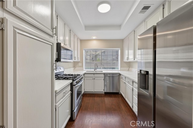 This is Orange County living done right. This inviting condo features two spacious, private bedrooms, each with its own en suite bathroom, and no carpet throughout the home. The upgraded kitchen showcases stainless steel appliances and sleek quartz countertops, while the beautifully remodeled bathroom and shower add a touch of modern elegance. Enjoy the convenience of being just minutes from major freeways, shopping, and grocery stores, all within an award-winning school district and close to several neighborhood parks. Don’t miss your opportunity to see this stunning two-bedroom condo in Sycamore Glen before it’s too late.