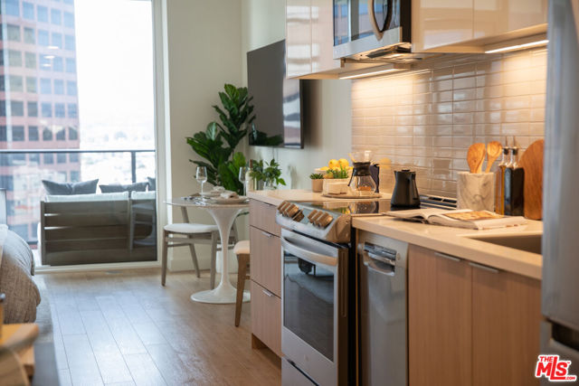 The Landmark Los Angeles is a dazzling 34 story residential tower offering sophisticated floor plans paired with unparalleled views and resort-inspired amenities. Residence #2409 is a Studio apartment floor plan with a spacious balcony. Centrally located on Wilshire Blvd. and tucked behind a beautifully landscaped one-acre park, LMLA offers a serene oasis of calm and an uncompromised living experience that is worlds apart from the hustle and bustle of the city. The LMLA lifestyle highlights the unique indoor/ outdoor lifestyle for which Los Angeles is known. Our signature floor-to-ceiling glass-walled apartment suites open onto expansive private balconies for spectacular ocean and mountain views accompanied by the cool ocean breeze. Get into the best shape of your life in the professional fitness center or swim laps in the 75'x25' heated pool. For the days when all you want to do is kick back and relax, you'll find yourself at home amidst plush resident lounges, our modern multimedia club room, outdoor fire pits and gourmet on-site cafe. Our stylish and modern apartment residences offer gourmet kitchens with custom Italian cabinetry, state-of-the-art energy efficient appliances, premium wood-style plank flooring, walk-in closets with custom shelving, in-unit washer and dryer, rolling window shades, and so much more.
