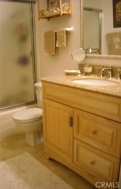 AWESOME remodel with stackable washer and dryer to give more counter space in kitchen.. Great solid wood cabinets and black granite counters with upgraded appliances. Newer Dishwasher. Travertine tile in entry and kitchen with laminate wood floors throughout, replacing carpet. Marvelous view from sliders on the water of the Orangetree Lakes. Private patio visible through the sliders in the living room AND over the breakfast bar to the Kitchen. View adds ambiance to the entire living area.Two waterfalls add charm and refreshing sounds for tranquility and privacy between the units. Patio is on the shady side of the building. New dual pane windows in Kitchen and Bedroom. Bedroom with closet sliders. Bath remodeled with raised vanity and additional drawer space, new toilet and light fixtures. Very nicely and elegantly done. Walking distance to Irvine Valley College, Bus ride to UCI, or Nearby shops in 2 directions or follow Irvine Center Dr to the Spectrum. One carport assigned. Guest parking requires a parking pass is available on a first come basis. Street parking also allowed. Find the unit by locating building 31 Park in front of building 43 and walk through meandering sidewalk paths to front door. Buildings are numbered by builder parallel to Orange Blossom and there are maps by the mailboxes around the outer edge of the complex. GPS is helpful. Newer water heater in the cabinet next to front door. Entry is very basic but remember the best is on the inside and back patio. 2 pools, spas on each end of the complex. One is heated from season to season. 6 lighted tennis courts are very helpful during day light saving time, several basketball courts. Bathroom next to workout gym requires a key from Master Association as does the gym. Workout Gym in the Clubhouse is free to residents but each must submit a refundable deposit to management company. Clubhouse can be reserved for rental charge to HOA. Clubhouse includes a full kitchen and is furnished so adaptable for meetings or parties or family reunions. There is a charge and requires a reservation but it’s worthwhile. Make the most of the amenities. Maximize the neighborhood visiting city park on Valley Oak. Or take your dog to one of 2 dog parks for 2 size dogs. Local bus service down Irvine Center Dr to the Spectrum for food and entertainment and shopping. Go closer to shopping strip on Alton and Jamboree. Bus ride to UCI or walk next door to IVC for award winning college. International foods nearby