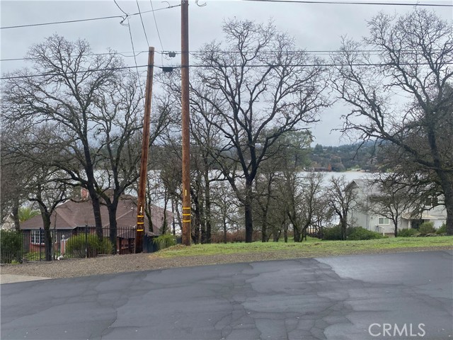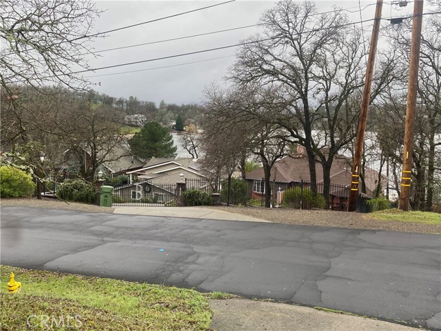 Upsloped lot with lots of trees sits across the street from Hidden Valley Lake on a super quiet cul-de-sac in the sewered neighborhood.