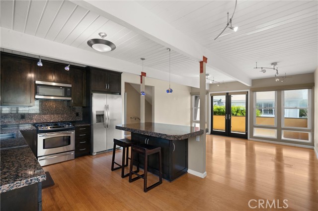 Beautiful ocean view mid-century modern Lantern Village Dana Point Single Family Home. Less than one mile to the ocean and harbor. Walk to dozens of restaurants, bars, shops (Walkability score is 86 / 100). The home was completely remodeled in 2006 and voted “Most Beautiful Home in Lantern Village” in 2011. This home offers plenty of space and storage with three bedrooms plus a huge den or office. The home features a very private ocean-view roof deck, an additional deck on the 2nd floor, and a small private back yard. Mid-century modern design with artistic touches throughout including granite counters in the kitchen and both baths, with bamboo and cork floors. Both bathrooms have both shower and bath. Located in a very quiet Lantern Village neighborhood with short distance to Dana Point Harbor and Doheny Beach. One bedroom, bath, office/den, laundry room, and attached garage are on the ground floor. Two bedrooms, bath, living room, kitchen, and deck are on the 2nd floor, with a roof deck above (3 bed + den total or 4 bedrooms). Refrigerator included. Cat 5 ethernet and coax cable in most rooms. Ideal for people working from home. Two blocks away from Ocean Knoll Park and Crystal Cove Dog Park.