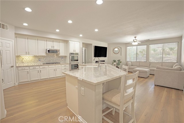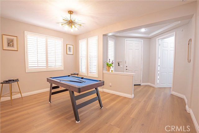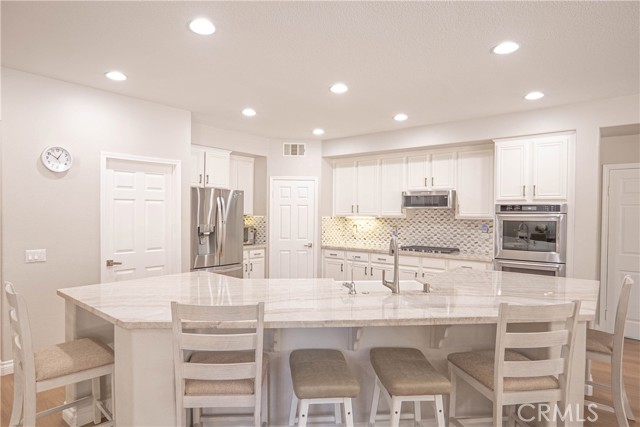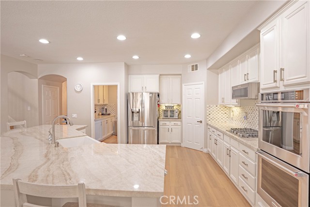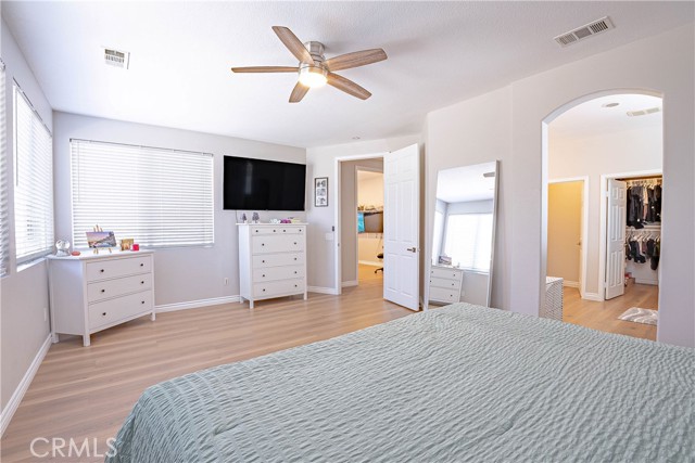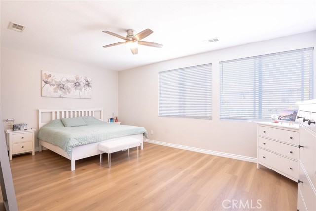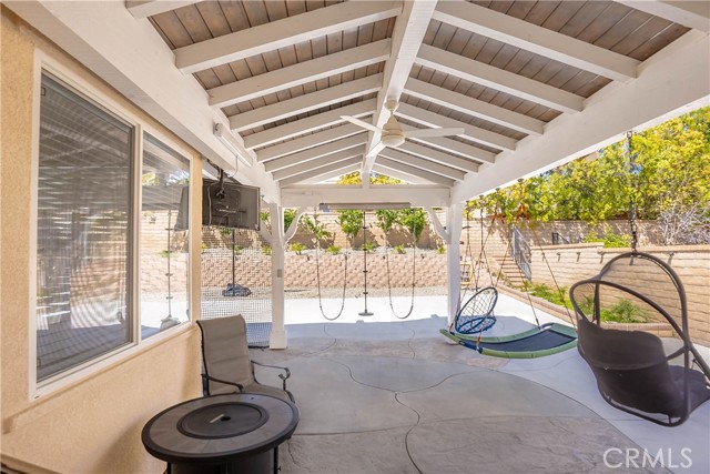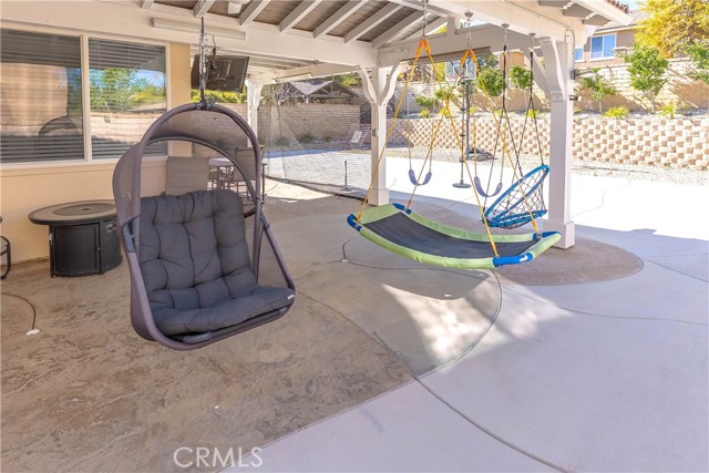 Welcome to this beautiful Tesoro del Valle home. Open concept floorplan, with lot of natural light, and a spacious kitchen with a lot of storage space will satisfy all your entertaining dreams. KitchenAid appliances, soft close drawers/cabinets, a walk-in pantry and adjacent updated butler's pantry are just some of the features you’ll enjoy. First floor offers recess lighting with energy efficient LED lightbulbs, a flex room off the kitchen that can be used as a large office or another bedroom, and a den/bedroom and half bath, and a small gym adjacent to the garage . The upstairs bedrooms all feature large closets with built-ins, and there is a loft perfect for a play room or even another bedroom. Accessible from the dining room, enter a large backyard featuring a wonderful built in patio-cover with fans and electric heaters. SOLAR PANELS ARE FULLY PAID OFF and are able to generate electricity for the entire house! Additionally, a Tesla car charger has been installed in the garage, as well as a tankless water heater. The property is equipped with a smart sprinkler system and dual Nest thermostats allowing for optimal temperature control and energy efficiency throughout the home, as well as two laundry units upstairs and downstairs. The garage provides plenty of space for vehicles and additional storage needs, including an accessible attic. Tesoro del Valle Master HOA delivers beautiful amenities including 2 pools, a clubhouse, tennis courts, a playground & a beautiful duck pond, a gym and volleyball court. This home is also walking distance to a top rated Elementary & Junior High School. Do not miss this modern home that combines sustainability and comfort!
