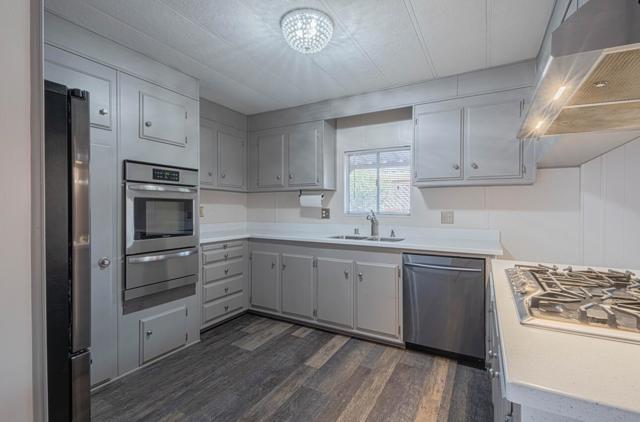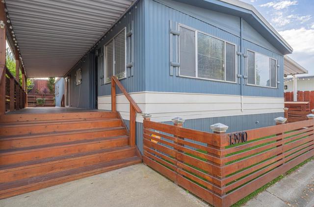 Monte Del Lago waterfront site in all age park. This modernized three bedroom, two full bath mobile home opens to a large living room. Updated kitchen with stainless steel appliances and convenient breakfast bar. A separate family room creates flexible living space, while the generous primary suite includes updated bathrooms. The indoor laundry room adds everyday ease, and the interior has been freshly painted throughout. Outside, enjoy an extended deck with pergola, low maintenance turf ideal for pets, and a large storage shed. The terraced backyard is perfect for gardening and seasonal blooms. Ideally located across from tranquil ponds with walking trails and visiting ducks, the setting feels peaceful and connected to nature. The home is just steps from the community clubhouse, where residents enjoy a swimming pool overlooking Elkhorn Slough, along with whirlpool spa, basketball courts, playgrounds, and the soothing sounds of the fountain. Monte Del Lago also offers community organized activities, a spacious clubhouse with billiards, a fully equipped fitness center, and a well stocked game room. This pet friendly community includes on site laundry facilities, professional management, and convenient RV storage, creating a lifestyle that feels both relaxed and well cared for.