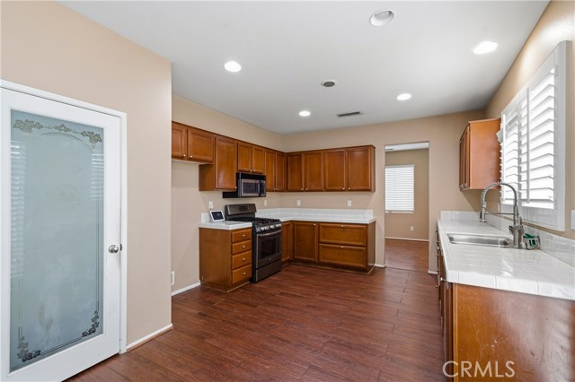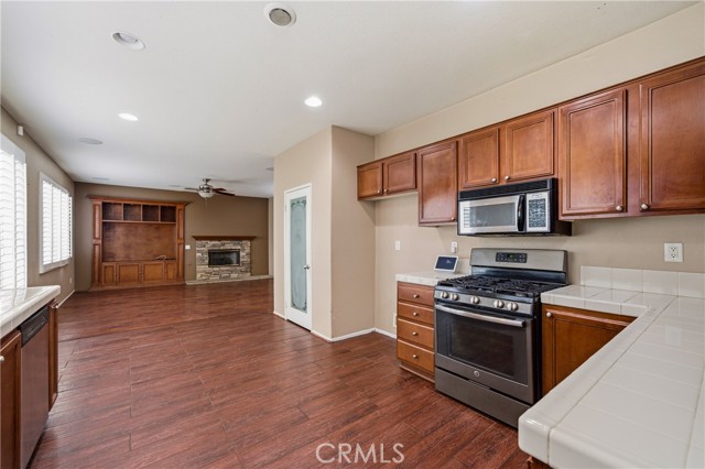 Entertainers Delight! Located in the highly desirable Victoria Grove community near Lake Mathews, this expansive 6 room, 3 bath residence offers the perfect blend of space, comfort, and entertainment ready living. Featuring approximately 3100 square feet of living space. Upon entry, you’re welcomed by formal living and dining areas ideal for hosting holidays and special gatherings. The oversized upgraded kitchen features abundant cabinetry, generous counter space, and a walk-in pantry, all opening seamlessly to the inviting family room with a built in entertainment center and high end fireplace creating a warm yet impressive central gathering space. The flexible floor plan includes two bedrooms and a full bathroom downstairs, perfect for guests, multigenerational living, or a private office setup. Upstairs offers four additional bedrooms, two full bathrooms, and a spacious loft ideal for a media room, game room, or secondary living area. The expansive primary suite provides a true retreat with a large walk-in closet and a spa-inspired bathroom featuring dual vanities, a soaking tub, and a separate shower. Upgraded flooring runs throughout the home, adding a polished and modern touch. The backyard is fully landscaped and hardscaped for year-round enjoyment, complete with a spa accented by custom rockwork, covered patio, and BBQ area designed for memorable gatherings and effortless entertaining.