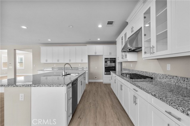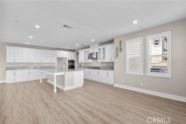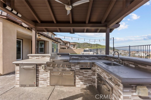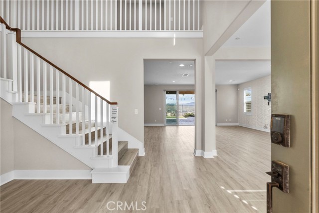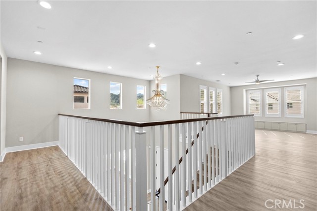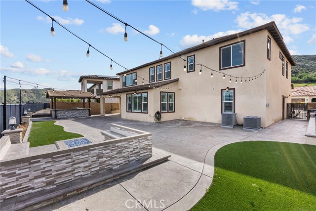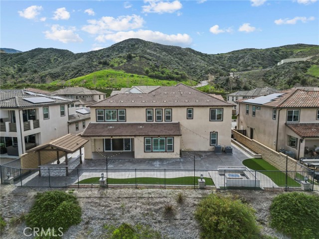 Luxury Living with Sweeping Panoramic VIEWS in prestigious Aliento! Welcome to an exceptional residence in the highly sought-after, gated Cresta community of Aliento — a hidden gem in the Santa Clarita Valley. This beautifully upgraded 5-bedroom and 5-bathroom home offers 4,023 square feet of refined living space, thoughtfully designed for everyday comfort and upscale entertaining. A bright open-concept floor plan is enhanced by newly installed wood-style flooring throughout and fresh interior paint, creating a modern and sophisticated ambiance. The main level features a private downstairs bedroom, living quarters with a full bathroom that is ideal for guests or multigenerational living, plus a dedicated bonus room currently used as a home office, conveniently located near the first-floor laundry room. Fully paid-off owned solar panels provide long-term efficiency & added value. At the heart of the home, the chef’s kitchen impresses with an oversized center island, granite countertops, premium stainless-steel appliances, a gas cooktop, double ovens with convection, soft-close cabinetry, and a spacious walk-in pantry — perfectly appointed for culinary enthusiasts and entertainers alike. Upstairs, a generous loft provides flexible living space for a media lounge, playroom, or family retreat. The primary suite is a true sanctuary, showcasing breathtaking mountain & valley views, a spa-inspired bathroom with a freestanding soaking tub, a walk-in shower, dual vanities, and an expansive walk-in closet! Step outside to an entertainer’s dream backyard, beautifully designed with custom stamped concrete, a striking blue-glass gas firepit, and a covered outdoor kitchen complete with built-in BBQ, cooktop burner, sink, and refrigerator. Ideal for evening gatherings or relaxing under the stars. Residents of Aliento enjoy a resort-style lifestyle with access to a clubhouse, adult and children’s pools, jacuzzi, fitness center, dog park, and private community park! Ideally located near a wide array of excellent shopping, dining, parks, and scenic hiking trails. This home perfectly blends luxury, convenience, and natural beauty. A rare opportunity to own in one of Santa Clarita’s most desirable communities. Experience elevated living in Aliento — where luxury meets lifestyle!
