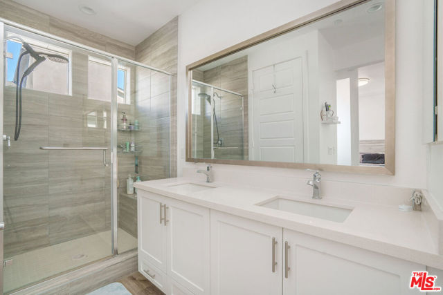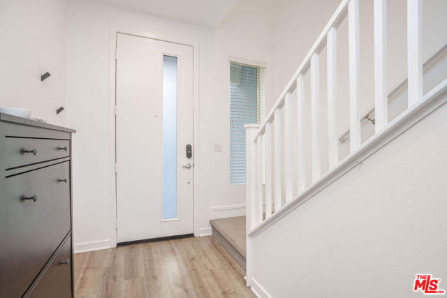 Welcome to refined living at The District, Northridge's premier gated community. This impeccably designed 4-bedroom, 3.5-bathroom townhouse, built in 2018, offers a sophisticated blend of modern architecture, upscale finishes, and resort-style amenities perfectly suited for today's discerning buyer. Upon entry, you are greeted by an expansive, light-filled living space featuring soaring ceilings, recessed lighting, and sleek laminate flooring, creating an elegant yet inviting atmosphere ideal for both entertaining and everyday living. The designer kitchen is a true centerpiece, showcasing a generous island, pantry, appliances, farmhouse sink, and tile backsplash seamlessly connecting form and function. The entry level includes a private ensuite bedroom, ideal for guests, a home office, or multigenerational living, along with direct access to a two-car garage complete with storage. Upstairs, three additional bedrooms are complemented by a thoughtfully appointed laundry room with side-by-side hookups and cabinetry for added convenience. The luxurious primary suite serves as a private retreat, featuring a walk-in closet and bathroom with dual vanities and a walk-in shower. A beautifully finished hallway bathroom offers dual sinks and a shower-over-tub, providing comfort and style for family or guests. Additional premium features include multi-zone central air conditioning, double-pane windows, tankless water heater, secure FOB-accessed entry, and guest parking delivering exceptional comfort, efficiency, and peace of mind. Residents of The District enjoy a resort-style lifestyle, supported by monthly HOA dues of $495, which include common area maintenance and general insurance, ensuring a well-maintained and secure community. Amenities feature a sparkling pool and spa, outdoor cooking and BBQ areas, picnic spaces, dog park, multiple fire pits, lounge seating, entertainment areas with TV, guest parking, and impeccably maintained grounds. Ideally located near premier shopping and dining destinations such as Northridge Fashion Center, Porto's Bakery, Super King Market, Target, and Lowe's, this exceptional residence offers an unparalleled combination of luxury, convenience, and lifestyle. An extraordinary opportunity to own a sophisticated home in one of Northridge's most exclusive communities.