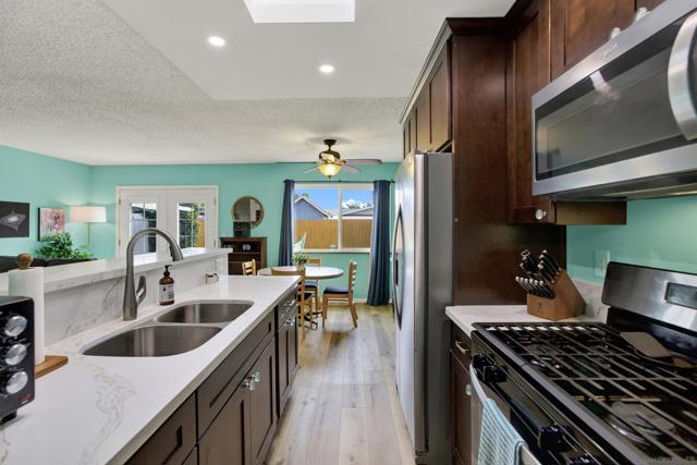 Exterior just painted and section 1 termite clearance completed! Charming attached Oceanside cottage just 5 blocks from Libby Lake Park! This 2 bed, 1 bath home offers smart living space on a 4,000 sq ft lot. The beautifully renovated kitchen features modern cabinetry, quartz-style counters, stainless steel appliances, and recessed lighting with a skylight overhead. Laminate flooring flows throughout the open-concept layout. The updated bathroom features a walk-in shower with decorative tile inlay and skylight. Energy-conscious buyers will appreciate the whole house fan and newer dual-pane windows and slider. Step outside to a spacious backyard complete with a gazebo, shed, and gated RV parking area. The attached 1-car garage includes built-ins and drop-down attic stairs for bonus storage. No HOA and recent upgrades mean this move-in-ready gem is perfect as-is, yet also ready for your personal touches. Whether you're a first-time buyer or looking to downsize, this home delivers comfort, value, and location. Don’t miss it!