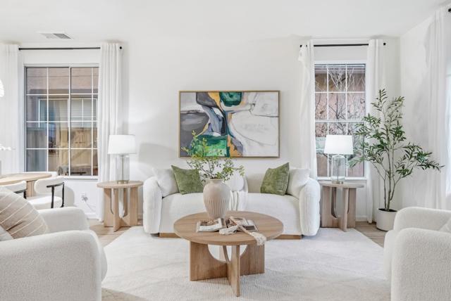 Welcome to this beautifully fully renovated 4-bedroom, 2.5-bath Willow Glen home offering 1,949 sqft of thoughtfully designed living space. This elegant two-level residence features fresh interior paint, brand-new flooring throughout, and a completely updated kitchen and bathrooms, creating a modern yet warm living environment. Upon entry, you are welcomed by a spacious living room and formal dining area with an open, airy flow. The expansive family room seamlessly connects to the stunning new kitchen, showcasing stainless steel appliances, gas range, Corian countertops, full decorative tile backsplash, abundant cabinetry, and a unique accordion window that opens to the landscaped backyardperfect for indoor-outdoor living and natural light. Upstairs, the bedrooms are generously sized with plush carpeting, while the updated bathrooms feature stylish tile finishes. The luxurious primary suite offers a walk-in closet and a spa-inspired bathroom with a soaking tub and separate shower. Situated in a well-maintained community with lush landscaping and nearby parks, this home is centrally located near downtown Willow Glen, Westfield Oakridge, major high-tech employers, and offers easy access to Caltrain, Light Rail, and Highways 87, 85, and 280.