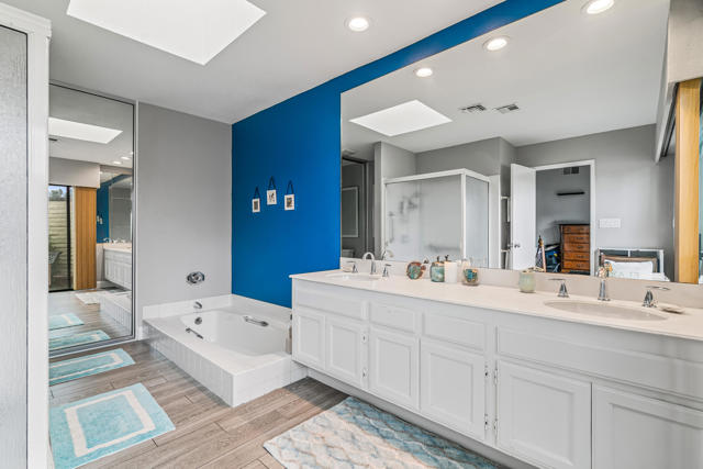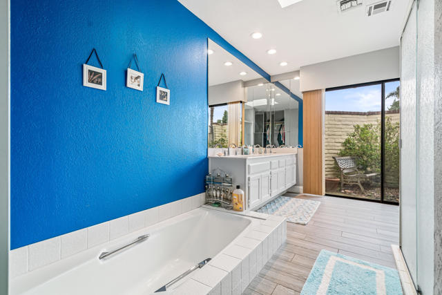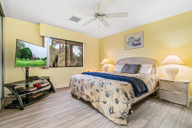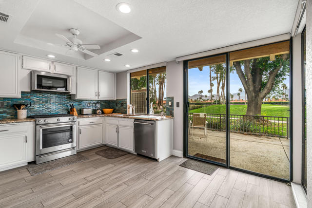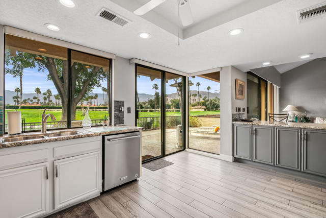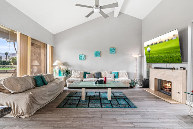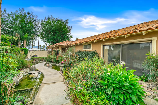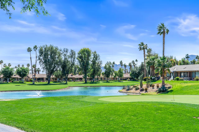 Don't miss out on this great opportunity to own a PREMIER LOCATION in Monterey Country Club. This spacious South facing 3000 plan sits on a LARGE, 5227 s.f. CORNER lot with BREATHTAKING SOUTH FACING VIEWS of the majestic surrounding mountains and overlooking the green of the first hole of the East course. The large east facing patio boasts an oversized Koi pond and a large entertaining area. Make it your own and bring your imagination to this great condo. Upgrades completed to date are plank tile flooring throughout, all new appliances, tiled fireplace, beautiful granite countertop/backsplash in the kitchen and brand new vertical blinds installed throughout. The wall that separated the kitchen and the living room was remodeled and a new cabinet and granite countertop was installed which opens up the kitchen space. A pantry cabinet was created in the kitchen. Monterey Country Club features 27 holes of Ted Robinson designed golf, 13 tennis courts, 20 pickleball courts, 4 bocce ball courts, a fitness center and 37 pools and spas. The Club offers a vibrant social atmosphere and a lively Clubhouse with year round dining and events. Located in the heart of Palm Desert, just minutes to El Paseo, shopping, fine dining, art galleries, hiking, theaters and more.