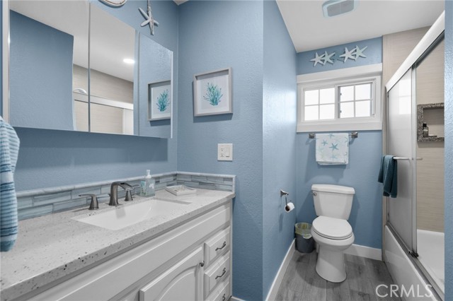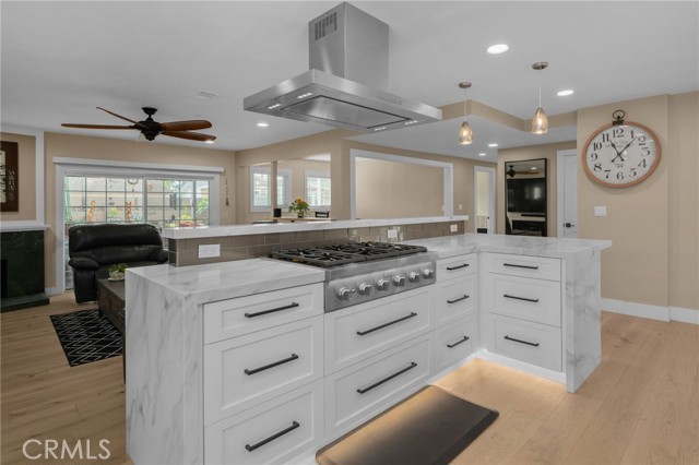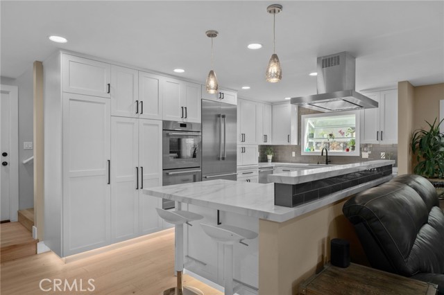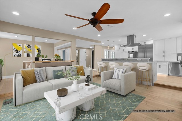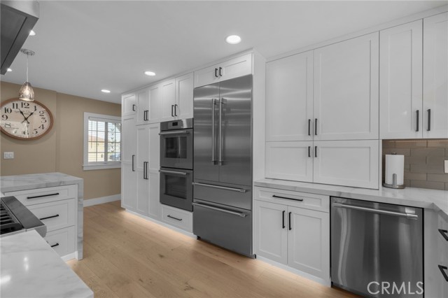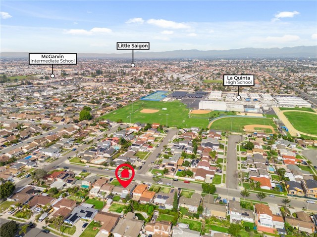 This Beautifully Remodeled Home is Absolutely Stunning! Once you enter this Gorgeous Home you will be delighted with the quality of the remodel, the open floor plan, & the Separate Living Quarters. The formal entry features an exquisite custom front door with a built in screen & engineered European Oak flooring. The expansive open-concept kitchen is a Culinary Paradise! There's an abundance of white shaker cabinetry with pull out shelves & soft-closing doors, luxurious quartz countertops, a striking kitchen island with pendant lighting & breakfast bar, all Stainless Steel Thermador Appliances: a built-in french door refrigerator & bottom freezer, built-in double ovens, built-in microdrawer microwave, 6 burner gas cooktop, dishwasher, a professional island range hood, & under cabinet floor lighting. This amazing kitchen connects effortlessly to the spacious living room that features Oak flooring, a cozy fireplace with granite hearth, ceiling fan, & a sliding glass door with a motorized privacy shade. There's a formal dining room that has oak flooring & custom built bar seating. The primary bedroom is located on the first floor & features oak flooring, bay window, ceiling fan, & mirrored closet doors. The other two downstairs bedrooms also have oak flooring, ceiling fans, mirrored closet doors, & closet organizers. The en suite bathroom has been completely remodeled with a beautifully tiled walk in shower w/frameless glass door, new vanity, new lighting, new fixtures, & new mirror. The hall bathroom has also been upgraded and features a tiled tub/shower combo, single sink vanity with corian countertop, & tile flooring. A HUGE plus to this home is that there is separate living quarters on the 2nd floor which has been remodeled. (was rented out for $1750 mo) The kitchen features white shaker cabinets, corian countertops, gas stove, refrigerator, & vinyl plank flooring. The living room/bedroom area is spacious and also has vinyl plank flooring, ceiling fans, recessed lighting. The bathroom features a walk-in shower, vanity with quartz countertop, linen closet, & a stackable washer/dryer. The peaceful backyard is beautifully landscaped. There's a he shed/she shed, garden, orange tree, new patio cover & epoxy covered cement patio. Other features include: dual pane windows & slider, recessed lighting, new interior panel doors/trim/hardware, new sprinkler system, tile roof, etc. This home is just steps from Mile Square Park, Little Saigon, & the 22/405 Freeways.