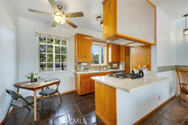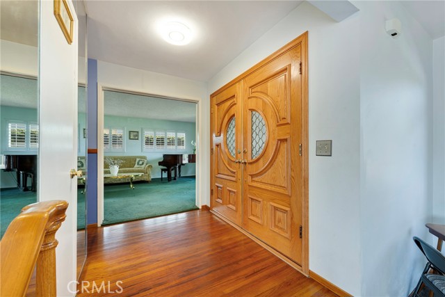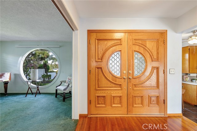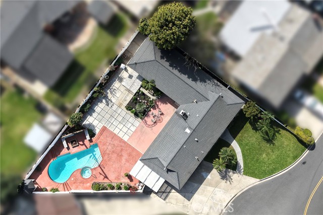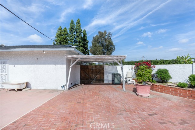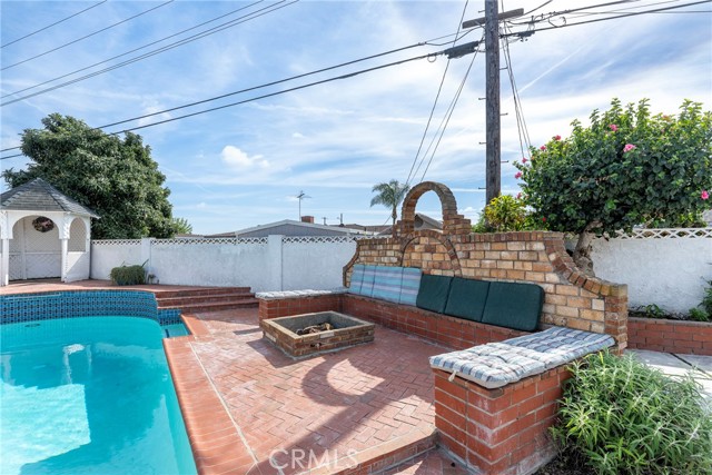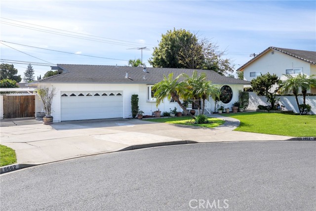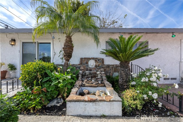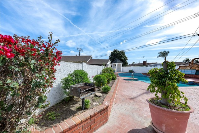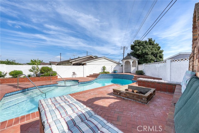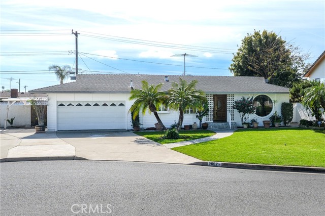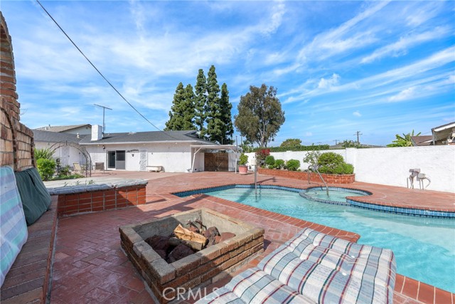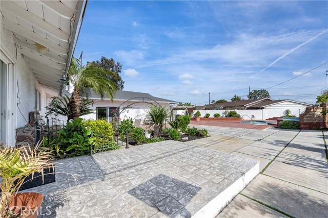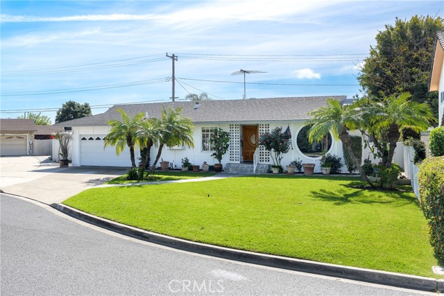 This ranch style home, located close to such entertainment amenities as KNOTTS BERRY FARM, DISNEYLAND & ANAHEIM STADIUM, boasts stunning curb appeal featuring beautiful landscaping, a 2 CAR DIRECT ACCESS GARAGE & a CARPORT WITH GATE ACCESS to the backyard on the left side of the home, as well as a GARDEN WINDOW to the kitchen, & a welcoming entry PORCH. As you enter the CUSTOM DOUBLE FRONT DOORS made of rich wood & circular glass mirroring the large circular living room window facing the street, you find yourself in a spacious entry with WOOD FLOORING ( through much of the house ) & a coat closet. To your right is the formal living room with 2 sets of windows along one side wall with WINDOW SHUTTERS ( on many windows ) & a long hallway with a plethora of storage cabinetry for linens & supplies that leads to the 3 BEDROOMS & 2 REMODELED BATHS. One bathroom has a beautifully tiled STEP IN SHOWER & sink/vanity with plentiful storage & updated TILE FLOORING. The 2nd updated bathroom has a bathtub/shower with a safety bar for easy access in & out for old & young alike. Two secondary bedrooms feature MIRRORED CLOSET DOORS with additional storage cabinets above them. The third bedroom has a WALK IN CLOSET. There is a door off this hallway into to the back yard. Going left from the front door leads you to the kitchen & family room. The KITCHEN has a DINING NOOK with fanlight & a door directly into the 2 CAR GARAGE with abundant storage areas. The garage also has the water heater, a UTILITY SINK WITH FAUCET between the washer/dryer area & has a door leading into the back yard. The kitchen is open to the FAMILY ROOM with a FIREPLACE & a sliding door to the AMAZING AMENITIES found in the EXPANSIVE BACK YARD. Upon entering the back yard patio area your eyes span left to right & see the POOL, SPA, FIRE PIT & Gazebo. Then there is an open area of large concrete pavers with a garden area & FOUNTAIN at the right side of back yard. This over 10,000 sq ft LOT does not disappoint! THIS PROPERTY IS A MUST SEE!