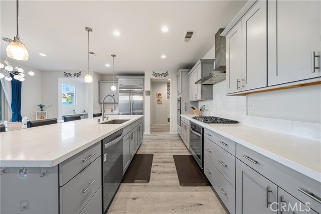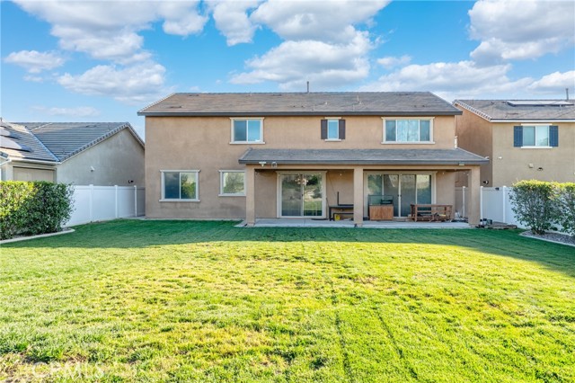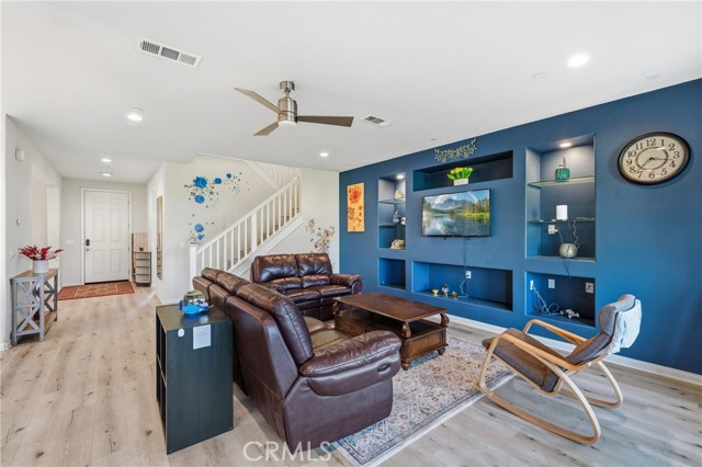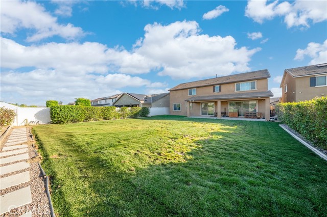 This high-quality detached residence stands in a distinctly higher category than typical homes in the area, offering 7 bedrooms and 5 bathrooms with approximately 4,100 square feet of interior living space—rare in both scale and functionality. The home features a main-floor en-suite bedroom, ideal for multi-generational living or hosting guests. Over $130,000 in upgrades have been invested throughout the property, significantly enhancing functionality, comfort, and overall quality. Interior appointments include luxury vinyl plank flooring, upgraded cabinetry throughout the home, and pull-out storage drawers in the kitchen cabinets. The kitchen is equipped with built-in professional-grade appliances, and the refrigerator is included in the sale. Additional recessed lighting has been added in multiple areas to enhance brightness and ambiance. Bathrooms and the laundry room are finished with marble flooring, while the primary bathroom features a full quartz shower and Carrara marble–style quartz countertops, offering a refined and durable finish. The home is equipped with a comprehensive smart home system, including smart light switches, smart thermostats, and a smart doorbell. Additional upgrades include a whole-house central vacuum system, Cat5e network wiring, and fiber internet capability with up to 1 Gbps upload and 1 Gbps download speeds, supporting fast and secure modern connectivity. A built-in media niche and pre-wiring for a surround sound system further enhance the living experience. Outdoor features include a California-style patio pre-wired for ceiling fans and a fully landscaped rear yard, ideal for everyday enjoyment and entertaining. A 12-foot sliding glass door creates a seamless indoor–outdoor connection. The front yard is designed with low-maintenance artificial turf, reducing ongoing upkeep. The garage is equipped with a 220-volt electrical outlet, ready to support electric vehicle charging. The north-facing orientation provides balanced natural light throughout the day and offers a clear advantage over east–west facing homes in terms of sunlight consistency and interior comfort. Well maintained and comprehensively upgraded, this home is ideal for buyers seeking space, quality, and long-term value. A rare opportunity to acquire a large-scale, highly upgraded residence in Jurupa Valley.