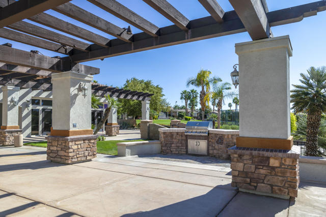 Welcome to your deeded luxury casita and motorcoach lot at The Vineyards Motorcoach Resort--a gated, lake-and-greenbelt community in the Coachella Valley just minutes off Interstate 10. Enjoy relaxing greenbelt, mountain, and pickleball-court views, plus a prime location just steps to the resort's clubhouse and social amenities. Residents enjoy a beautiful clubhouse, pools and spas, fitness center, pickleball and tennis courts, BBQ and fire pit areas, and scenic lakes/ponds--ideal for full-time living or a seasonal desert escape.The casita offers approx. 695 sq ft of comfortable living space plus an attached garage (approx. 410 sq ft) for storage, golf cart, and desert toys. Inside you'll find a functional 1 bedroom / 1 bath layout with a fireplace, central heating and air, and durable laminate and tile flooring. The kitchen features granite countertops and a solid appliance package including GE dishwasher and microwave, an Electrolux/GE refrigerator, and a Samsung range.Recent upgrades include a Navien tankless water heater, a newer air conditioner, and a smart thermostat. Fresh interior paint and touch-ups are being completed prior to photography. Per HOA rules, the community is designed for Class A motorcoaches (length/age requirements--verify with HOA), though motorcoach ownership is not required. Welcome home to luxury motorcoach living with the comfort of a true casita home base.