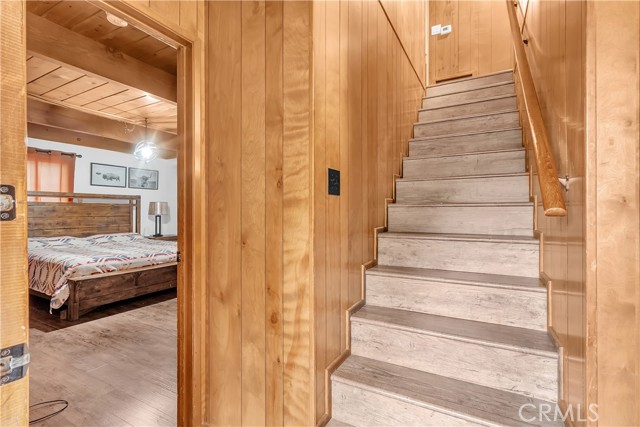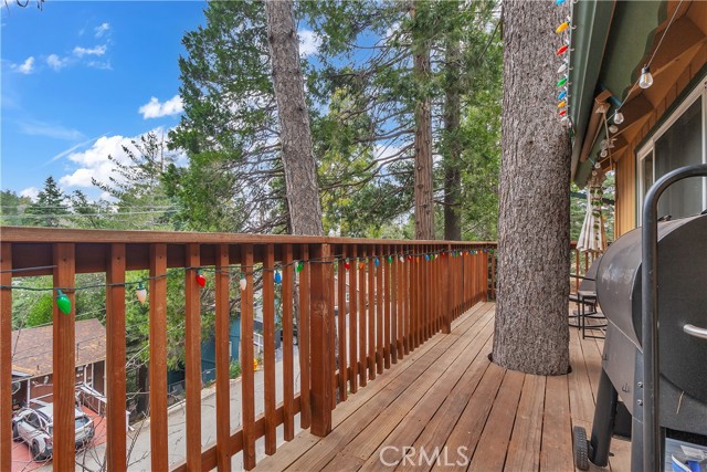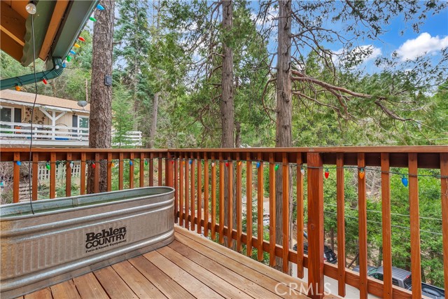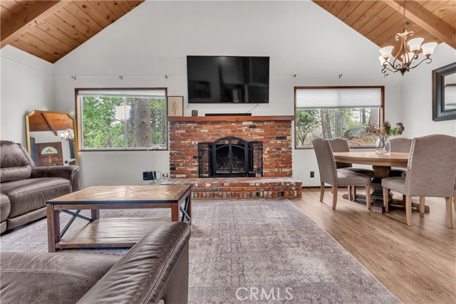 Charming mountain retreat located near Lake Gregory offering the perfect opportunity for full-time living, weekend escapes, or investment potential. This well-maintained home features a functional and inviting layout with two bedrooms conveniently located on the main level (of which one bedroom currently used as a gym) and two additional bedrooms upstairs, providing flexibility for guests, family living, or workspace options. The home showcases thoughtful updates, remodeled kitchen designed with a more open-concept floor plan that enhances flow and connection between living spaces—perfect for entertaining or enjoying everyday mountain living. Enhanced improvements through the years include updated flooring throughout, upgraded lighting fixtures, ceiling fans, refreshed interior finishes, and improved bathroom features with modern tile work, updated fixtures, and stylish glass shower enclosures. The property also features sliding glass doors and window coverings that enhance natural light and energy efficiency. Exterior upgrades include durable composite roofing and spacious redwood decks positioned to enjoy the surrounding mountain setting and outdoor lifestyle. Additional enhancements include upgraded plumbing fixtures, low-flow toilets, and freeze-resistant outdoor spigots for seasonal durability. Conveniently located near local recreation, dining, and year-round outdoor activities, this property offers a wonderful opportunity to enjoy mountain living at its best.