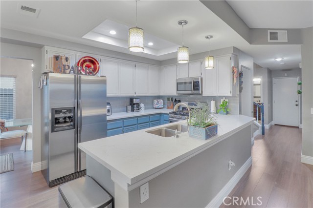 Welcome home to Sunnymead Ranch, one of Moreno Valley’s most sought-after communities, known for its resort-style amenities and strong sense of neighborhood living. This beautifully, fully remodeled two-story home offers 4 bedrooms and 3 full bathrooms with approximately 2,044 sq ft of open, comfortable living space designed for modern lifestyles. The home has been thoughtfully upgraded throughout, featuring new laminate flooring across the entire home, fresh interior paint, new baseboards, upgraded lighting, and new electrical switches and outlets. The open-concept layout flows seamlessly into the updated kitchen, showcasing newer appliances, quartz countertops, and a glass tile backsplash, all anchored by an upgraded quartz fireplace with a new custom mantle, creating a warm and stylish focal point. Comfort and efficiency were top priorities, with new A/C, furnace, and heating system; double-pane windows throughout; and solar panels to help reduce energy costs. All bathrooms have been fully remodeled, and new blinds and window coverings have been installed and will remain with the home. The outdoor space has been refreshed with new lawn in the front yard, low-maintenance turf in the backyard, a newer fence, and a storage shed that matches the home’s exterior color scheme, which is included in the sale. Residents of Sunnymead Ranch enjoy access to an impressive array of amenities, including a private lake with paddle boats, a pool and spa, tennis, basketball, pickleball and volleyball courts, horseshoe pits, scenic walking paths, parks, and a clubhouse available for private events and gatherings. The community is conveniently located near highly regarded schools, shopping, dining, and major commuter routes. This is a rare opportunity to own a truly move-in-ready home in a community that offers both lifestyle and convenience.