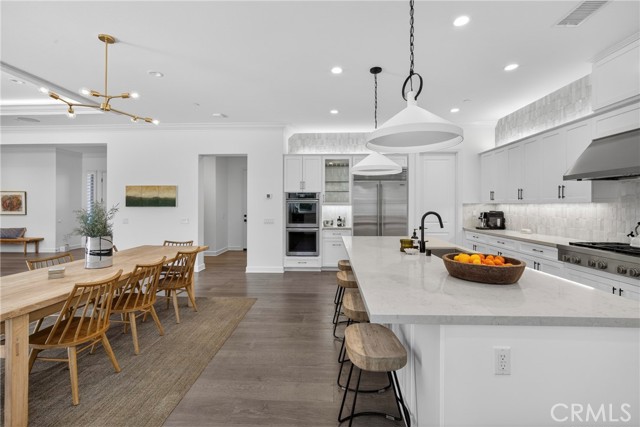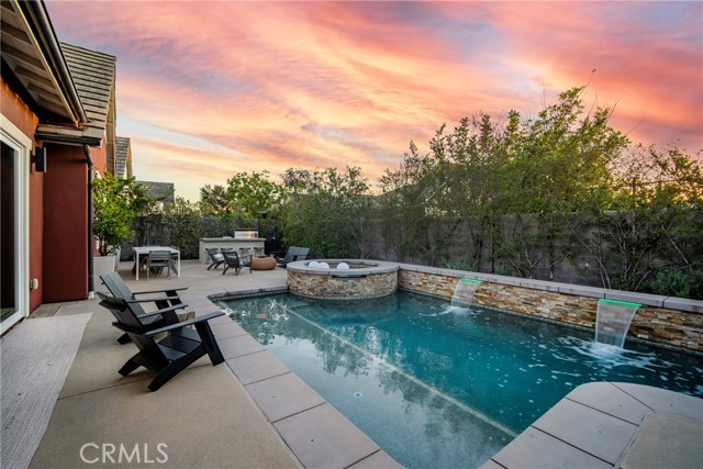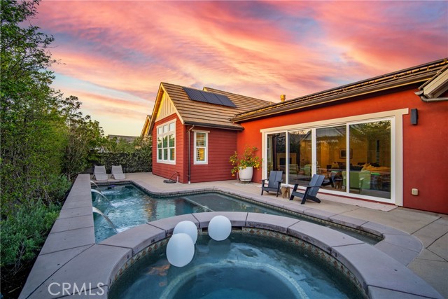 Designed for effortless living and elevated entertaining, this exceptional home in the Topaz neighborhood of Esencia, Rancho Mission Viejo, offers a rare blend of thoughtful design, high-end upgrades, and timeless style. With the primary living spaces, including primary suite and two secondary bedrooms thoughtfully located on the main level and a private loft and bedroom/office upstairs, the floor plan is both functional and flexible. At the heart of the home, the open-concept great room is filled with natural light and layered with refined details—wide-plank flooring, coffered ceilings, textured walls, statement lighting, and custom tile accents that elevate every space. The design strikes a beautiful balance where Craftsman charm meets modern farmhouse, creating a warm yet sophisticated aesthetic that feels curated without being overdone. The main level features the primary suite along with beautifully appointed secondary bedrooms, offering convenience and privacy for everyday living. Upstairs, a spacious loft and dedicated office provide separation and versatility—ideal for working from home, hosting guests, or creating a private retreat. Outdoors, the backyard is designed for relaxed Southern California living, complete with a sparkling pool and spa and an outdoor kitchen—perfect for al fresco dining and entertaining while enjoying expansive community views. Additional highlights include paid-in-full solar and a prime location within one of Rancho Mission Viejo’s most desirable communities. A refined, turn-key residence that seamlessly blends design, lifestyle, and location.