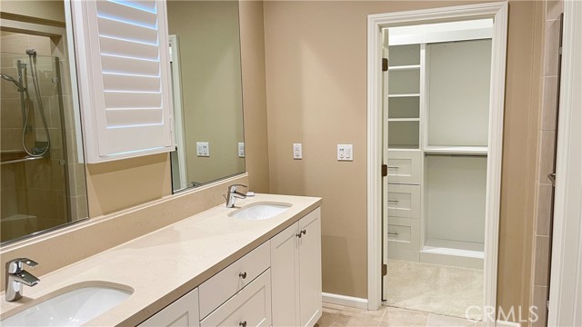 2 bedroom, 2 bathroom end unit condo in desirable Eastwood Village. A very well-maintained home at the inner location with many upgrades in the kitchen and bathrooms. This home has all bedrooms, living room and kitchen on the same floor. Stainless steel appliances, granite countertops, full backsplash, and white cabinet space in the Kitchen. A separate office area has a built-in cabinet with shelving and a connected desk. The Master Bedroom features a walk-in closet with build in organizer, dual vanity, and a walk-in shower. An oversized sliding door in the living room opens to the spacious patio facing Bishop Landing. Side-by-side two car garage with direct access to the house. EV charger in the garage. Resort like community. Amenities include park, pool, spas, BBQ area, playground and sports courts. Washer, dryer, refrigerator and water softener are also included. Minutes away from Zion Market, H Mart, Woodbury Town Center, 99 Ranch Market, Irvine Spectrum Shopping Center and Costco. Close to freeway entrances (5, 133, 241).