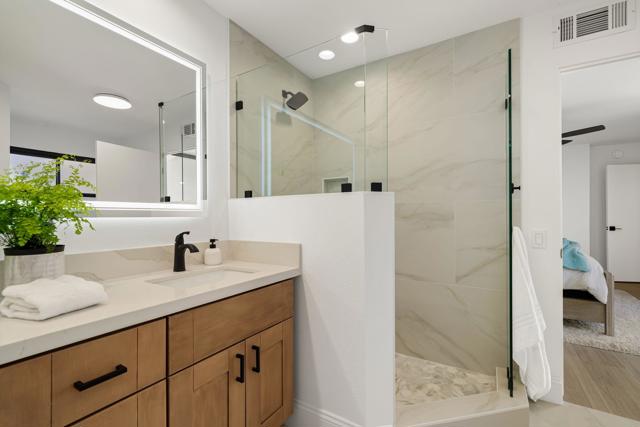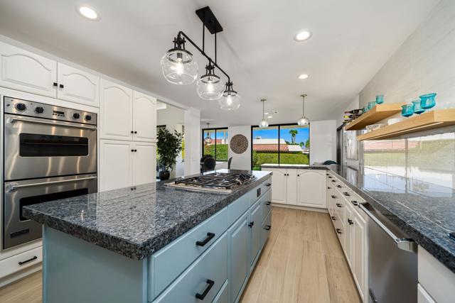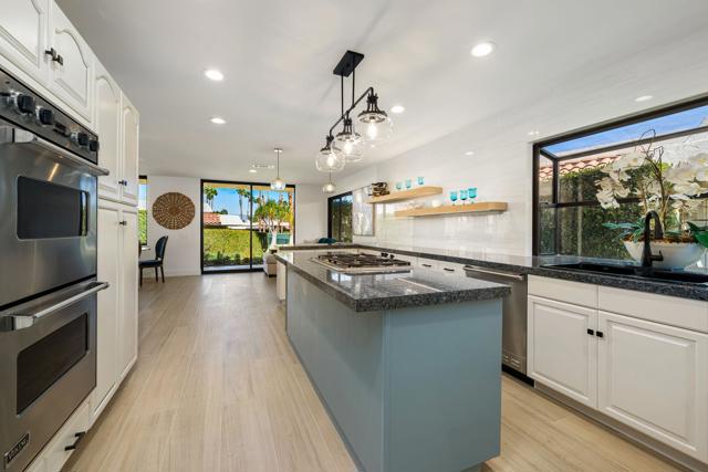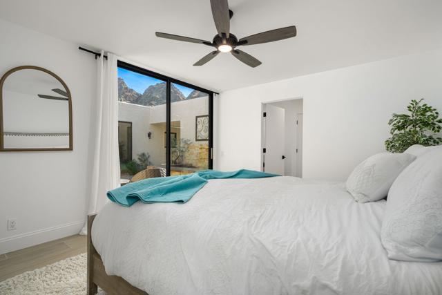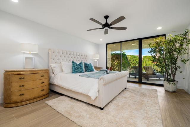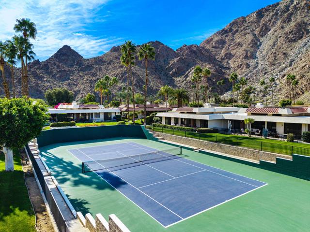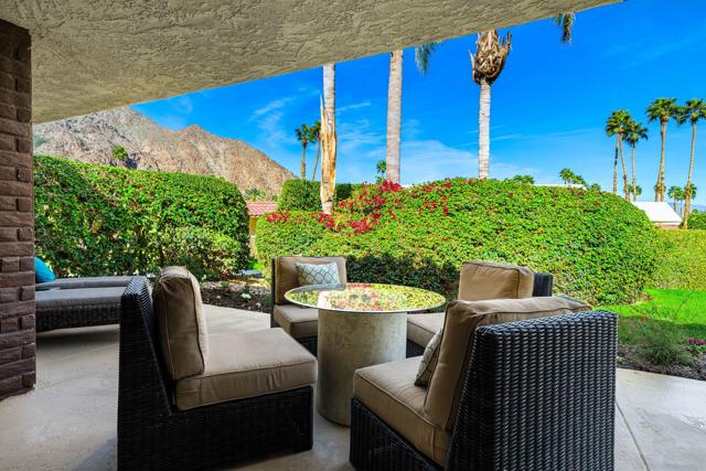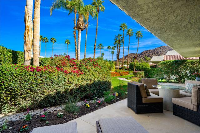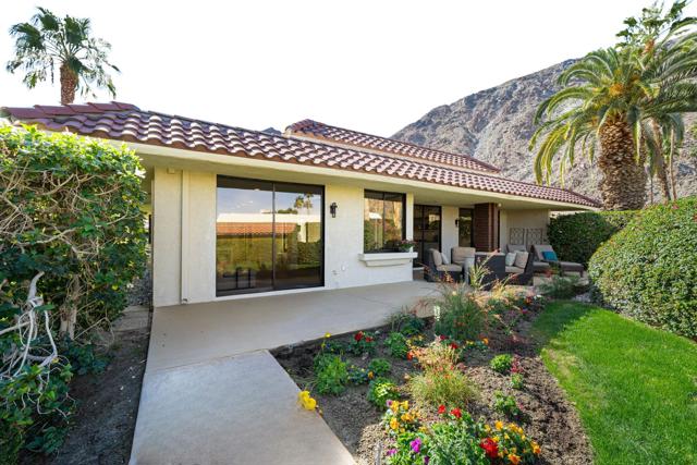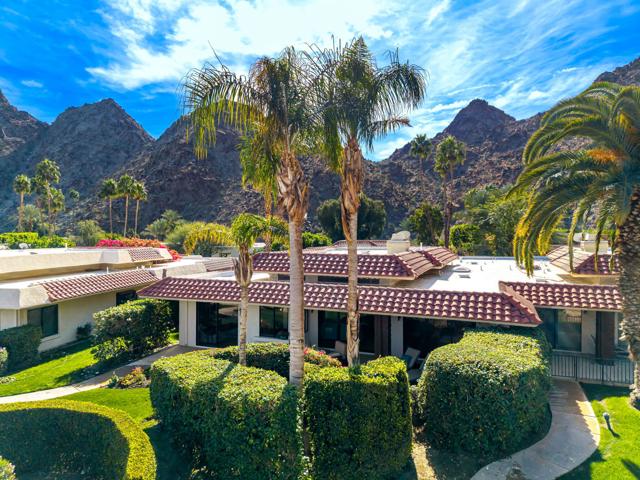Located within Indian Wells Country Club, this residence offers privacy, mountain views, and access to one of the Coachella Valley's most established country club communities. The home is situated in a 36-residence enclave with exclusive access to a private tennis court and two community swimming pools, just moments from the clubhouse and golf courses.Designed to capture wraparound mountain views, the home is centered around a private, enclosed front courtyard with slate flooring and a raised spa with waterfall feature, offering a resort-style soaking experience. The rear patio opens to lush, manicured landscaping and leads directly to the community pool and tennis court just steps away, creating an easy indoor-outdoor connection.Inside, the home has been extensively updated with a focus on flow, light, and comfort. Living, dining, and kitchen spaces were reimagined into an open-concept layout enhanced by soaring 12-foot ceilings. The living room features a gas fireplace with a dramatic floor-to-ceiling porcelain surround, flanked by custom built-in cabinetry and shelving. The kitchen has been thoughtfully updated with a clean, modern aesthetic designed for everyday living and entertaining.Cohesive flooring, smooth-finished walls and ceilings, recessed lighting, oversized baseboards, ceiling fans, and fresh interior paint create a polished, move-in-ready feel throughout. All three bedrooms are en suite, each offering direct access to either the front courtyard or rear patio. The completely remodeled, spa-inspired primary bath includes marble flooring, a freestanding soaking tub, a double-sink vanity, and calming ambient lighting. Guest and secondary bathrooms have been fully remodeled with designer tile selections, floor-to-ceiling tiled showers, quartz countertops, and updated fixtures.Indian Wells Country Club offers a variety of membership options, ranging from social and fitness memberships to multiple golf levels. Members enjoy access to golf, tennis, fitness facilities, dining, and social events. With mountain views, a private courtyard spa, and the pool and tennis court just steps from the back patio, this move-in-ready home offers an easy, relaxed desert lifestyle ideal for full-time living, a seasonal retreat, or a lock-and-leave getaway.