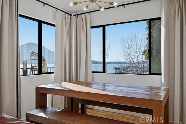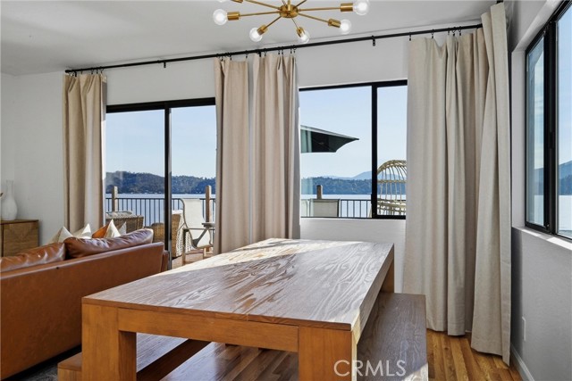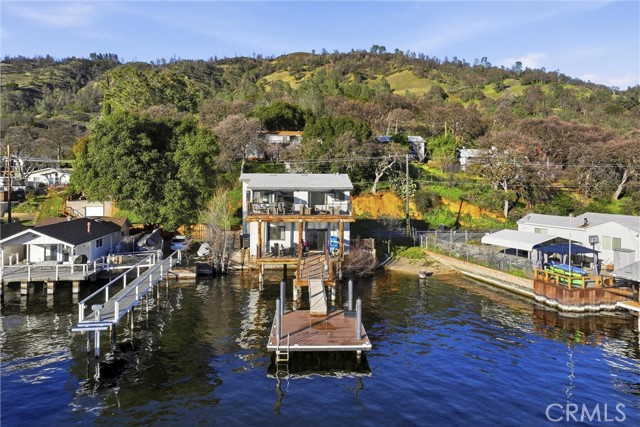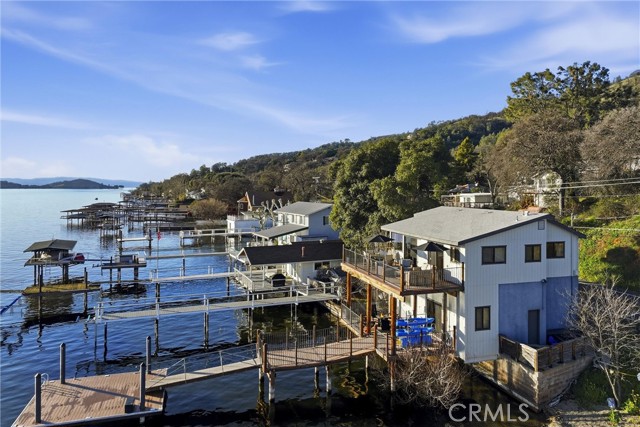 Just bring your boat! This turn-key 3bed/3bath LAKEFRONT home on the shores of Clear Lake is all ready for summertime, complete with a fresh renovation. Designed with a classy modern touch, this waterfront getaway features solid hardwood flooring, fresh light paint, open kitchen with quartz slab counters, and tons of windows all facing out over the water and Mt. Konocti for some of the best views around from sunrise to sunset. Large back deck off of the living area for entertaining plus a lower covered patio to walk right out onto your private pier and newer dock (with steel pilings!) Upper level includes the primary bedroom/bath, living area, kitchen & guestroom/bath. Entry level presents a second living room/game room with the third bedroom and full bathroom & laundry. Could be converted back into garage if needed in the future. Just a perfect set up for the entire family or for short term rental investment. Gorgeous (professionally staged) furniture & decor to be included for fair offer. Sale includes vacant lot across road (bonus parking/storage) and even a boat launch & beach area a few homes down with NO HOA costs. Paddleboard right off the beach/dock, absolute gem of a lakefront home!