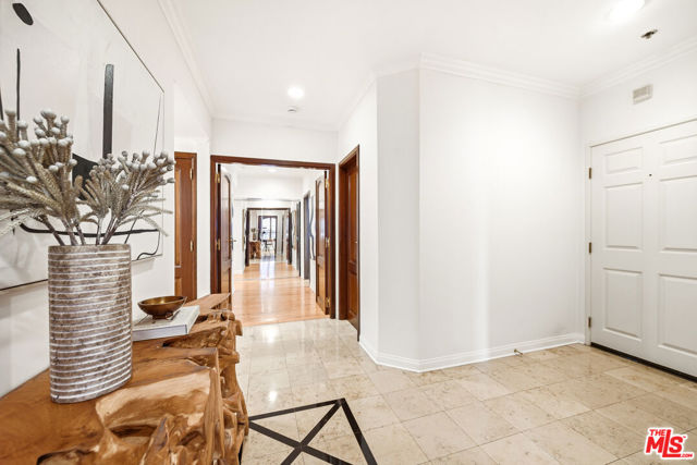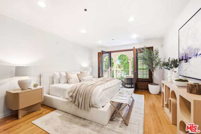Experience the luxurious Beverly Hills lifestyle in this stunning corner residence at the prestigious Faubourg St. Germain, ideally located in the heart of the city and adjacent to the iconic L'Hermitage Hotel. This elegant 2-bedroom, 3-bathroom home offers approximately 1,753 square feet of refined living space, enhanced by timeless French-inspired architecture.Hardwood floors flow throughout, while beautiful French windows flood the home with natural light and open onto a south-facing private terrace overlooking lush treetops. The open floor plan, generous room sizes, and only one shared wall make this residence exceptionally desirable and serene.The airy kitchen features marble floors and countertops, ample workspace for culinary enthusiasts, and newly installed appliances perfect for both everyday living and entertaining. The spacious primary suite opens directly onto the tranquil terrace and is complemented by an opulent marble bathroom with a separate soaking tub and shower, creating a true spa-like retreat. Additional highlights include two coveted parking spaces, conveniently located near the elevator. This exceptional home is located within walking distance of everything Beverly Hills has to offer, including world-class shopping, fine dining, beautiful parks, and the renowned Rodeo Drive.