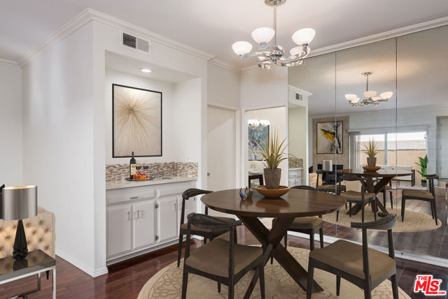 Beautifully renovated 2-bedroom, 2.5-bath townhouse located in the highly sought-after Encino neighborhood. This stylish home offers a spacious living area and formal dining space, highlighted by a cozy fireplace and wet bar perfect for relaxing or entertaining. The modern kitchen features quartz countertops, a tiled backsplash, generous cabinetry, and a full suite of appliances including refrigerator, stove, oven, dishwasher, and microwave. A charming breakfast nook and breakfast bar add both comfort and functionality. The main level also includes a tastefully updated powder room with elegant countertops and designer tile flooring. Upstairs, newer vinyl wood flooring leads to two expansive primary suites, each with soaring ceilings, abundant closet space, and beautifully remodeled en-suite bathrooms featuring dual sinks, custom tile flooring, and walk-in showers. Additional highlights include in-unit laundry, central AC and heat, ample storage throughout, and a private patio off the living room ideal for enjoying indoor-outdoor living. Residents enjoy resort-style community amenities including a pool, spa, fitness center, sauna, sun deck, and lush green spaces. The building offers secured, gated underground parking with two assigned tandem spaces plus extra storage. Ideally located near Ventura Boulevard, with easy access to shopping, dining, and the 101 freeway, this home offers comfort, convenience, and an exceptional Encino lifestyle.