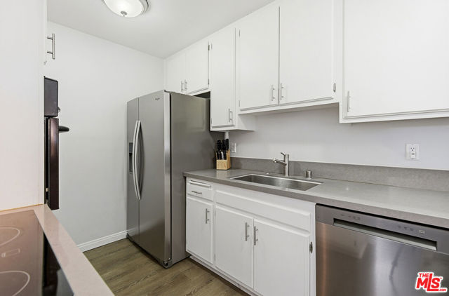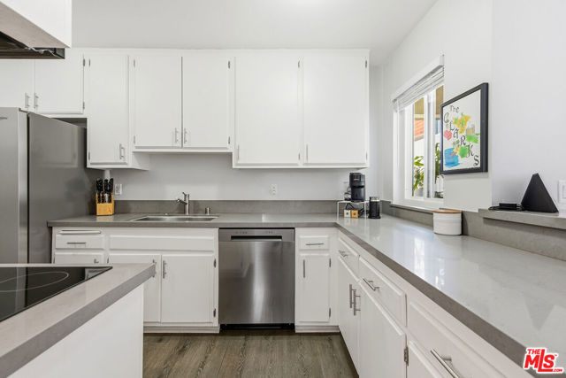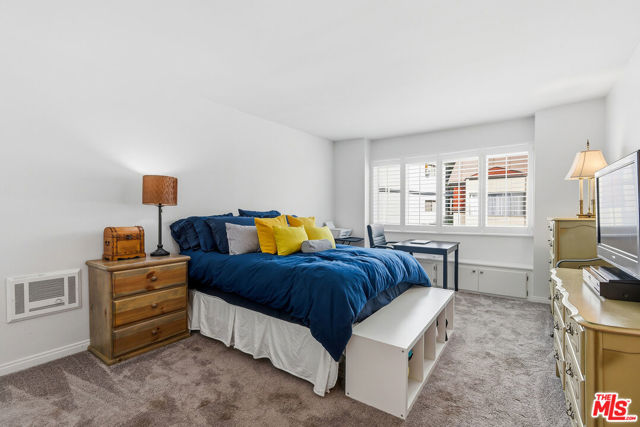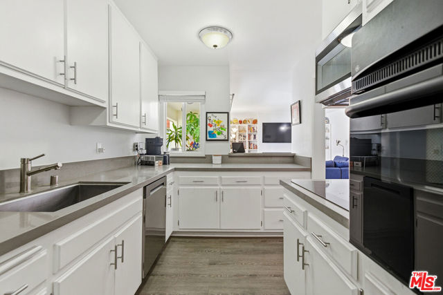 Welcome to this spacious one-bedroom, one-bath condo located in Culver City's desirable Fox Hills neighborhood. This home features an open floor plan, beautiful neutral flooring, and exceptional closet space and storage rarely found in a one-bedroom. A custom built-in entertainment center anchors the living area, highlighted by a remote controlled fireplace offering adjustable ambiance and heat settings. Enjoy indoor-outdoor living with the large balcony, complemented by a convenient kitchen pass-through window, perfect for entertaining. The updated kitchen offers generous storage and a newer (2025) refrigerator and dishwasher. The bedroom suite has two large closets and beautiful shutters. The updated bathroom includes a dual vanity, and a shower/tub combo. Additional features include extra storage in the garage and building guest parking. Conveniently located near Westfield Mall, Fox Hills Park, restaurants, entertainment, scenic hiking trails, and major big tech and entertainment companies. This condo also offers excellent access to freeways, and LAX. The entertainment center TV is included.