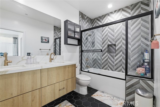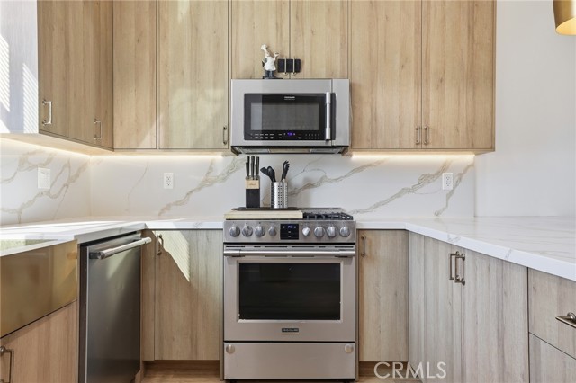 Enjoy the peace of mind that comes with new construction living—no old systems, no deferred maintenance, just modern design built for today. This 2,159 sq ft home offers 3 bedrooms, 3.5 baths, and a 2-car attached garage with thoughtful, high-end finishes throughout.The first floor features a private suite with a full bathroom, walk-in closet, and separate entrance, ideal for guests, a home office, or business use. Upstairs, the custom kitchen and bathrooms shine with Lucca frameless cabinetry, Zion quartz countertops, gunmetal apron farmhouse sinks, and designer Bell-shaped pendant lighting, complemented by high ceilings and Malibu hardwood flooring.An oversized private rooftop deck is built for entertaining, complete with a built-in BBQ and storage that stay with the home, plus mountain views perfect for gatherings and everyday relaxation. There’s also a motorized retractable patio awning installed on the roof—a permanent fixture that stays with the house.Smart-home pre-wiring includes Nest thermostats and a RING doorbell, while energy-efficient LED lighting, solar-ready capability, and EV-charger readiness add long-term value. Located in a gated new-construction community of 10 single-family small-lot homes, just minutes from the NoHo Arts District, and conveniently close to NoHo West, Universal Studios, Studio City, and a wide variety of restaurants and shopping centers.