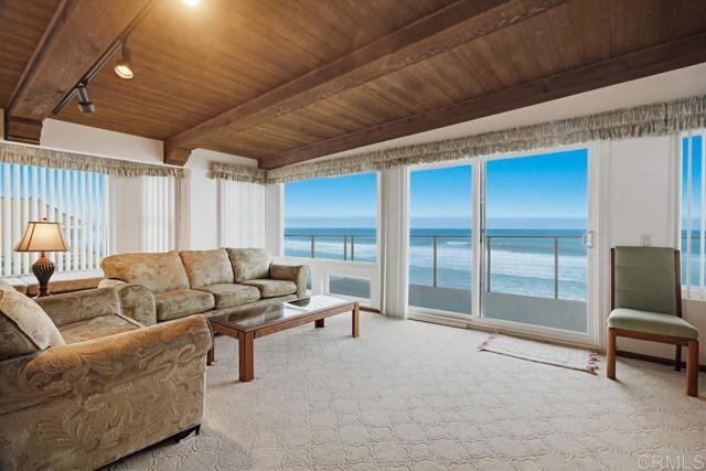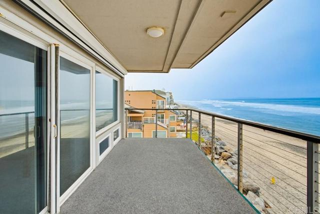 Stunning Top-Floor Corner Oceanfront Condo with Endless Panoramic Views! Wake up to the sound of crashing waves in this rare top-floor, corner-unit oceanfront retreat, where unobstructed panoramic views sweep from the Coronado Islands to Point Loma. Flooded with natural light, the open-concept living space showcases breathtaking ocean vistas from the kitchen, dining area, and living room — creating a seamless blend of comfort and coastal elegance. Step onto your private balcony to savor golden sunsets over the Pacific and sea breezes year-round. This beautifully appointed 2-bedroom, 2-bath residence features a warm and inviting fireplace, a spacious primary suite with a built-in office/work area, and a dedicated in-unit laundry room for ultimate convenience. Thoughtfully designed bench seating in the dining room, living room, and primary bedroom conceals generous cedar-lined storage, blending charm with functionality. Two gated parking spaces and a private storage unit complete the offering. Whether you’re seeking a luxurious coastal escape, a savvy investment opportunity, or both, this extraordinary oceanfront oasis delivers the very best of seaside living!