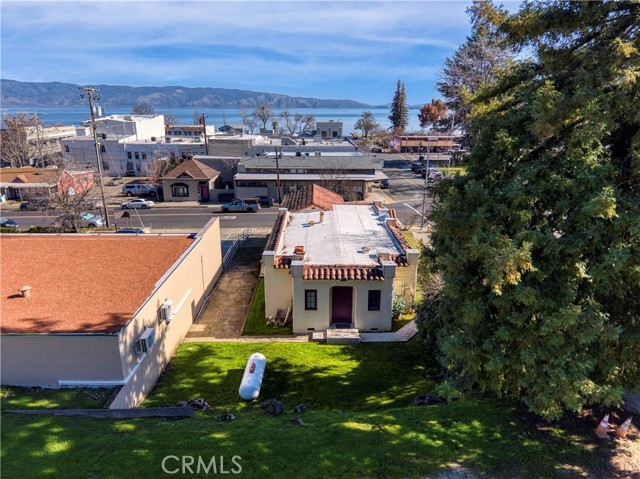 A rare opportunity in the heart of DOWNTOWN LAKEPORT. Perfectly positioned across the street from the county offices and just two blocks from Lakeport’s lakefront parks, this Spanish-style commercial property offers both presence and possibility in one of the city’s most walkable and vibrant locations. Surrounded by beloved local restaurants, cafés, and professional services, the setting is ideal for a business that values visibility and convenience. The distinctive corner entrance welcomes visitors into a thoughtfully laid-out interior featuring eight individual offices, a kitchenette, and a bathroom—well suited for professional services, medical or legal offices, or a collaborative business environment. Classic architectural details and natural flow create a warm, professional atmosphere that makes a lasting first impression. Adding to the value, the adjacent lot is included in the sale, offering exciting potential for future development, expansion, or additional parking. With professional office zoning and possible alternative uses such as multifamily or mixed-use development (with use permit), this property offers immediate functionality along with long-term opportunity. Whether you’re seeking a prime downtown office, an investment opportunity, or a property with redevelopment potential, this Lakeport offering stands out for its location, character, and versatility.