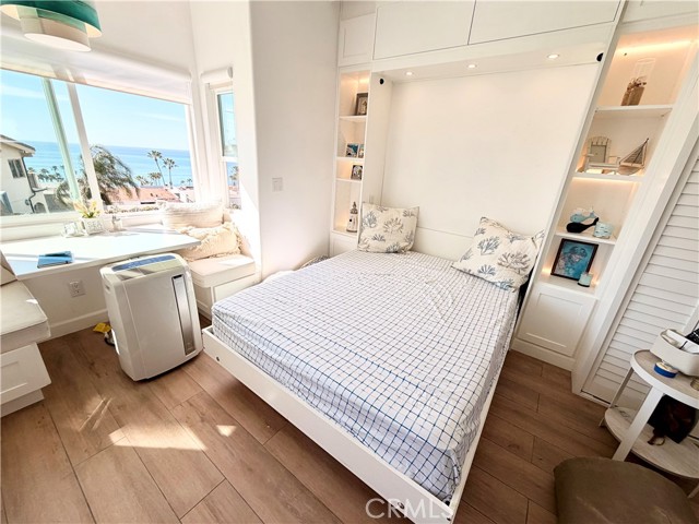 Enjoy sweeping ocean views from this beautifully updated studio condo, perfectly positioned to capture coastal breezes and natural light throughout the day. Offered furnished or unfurnished to suit your needs, this thoughtfully designed space combines comfort and style with charming beamed ceilings and high-end designer finishes. The open layout maximizes functionality and flow, featuring a built-in Murphy bed that allows you to easily transition between living and sleeping space. The kitchen and bath have been tastefully upgraded, creating a clean, modern aesthetic ideal for relaxed beachside living. Residents enjoy access to a community pool, on-site community laundry, and one assigned parking space for added convenience. This is a non-smoking property. A rare opportunity to live in a turnkey ocean-view studio with flexible living options in a well-maintained coastal community.