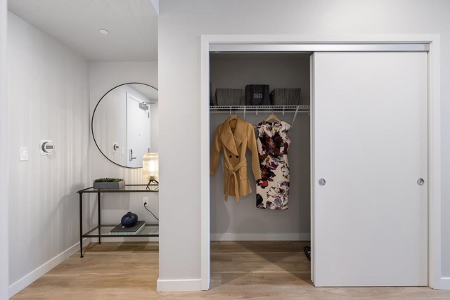 Now Selling at Caspian Brooklyn Basin. Discover modern waterside living in this thoughtfully designed JR 1-bedroom with a separate sleeping room, slider, and closet, a 1-bathroom condo, spanning approximately 550 sq ft. Located in one of Oakland’s most exciting new communities, this home offers a rare chance to own in a vibrant, amenity-rich setting. The open layout features sleek finishes, a well-equipped kitchen with Samsung stainless steel appliances, quartz countertops, and modern cabinetry. High-efficiency dual-pane windows frame the bright living area, while the bathroom includes quartz counters and Grohe fixtures. Includes in-unit washer and dryer. Caspian residents enjoy a fitness center, a dedicated co-working space, landscaped courtyards, a game room, and rooftop lounges with panoramic views. Situated on Oakland’s revitalized waterfront at Brooklyn Basin, the community provides direct access to parks, dining, and recreation, with Jack London Square, BART, and ferry service to San Francisco just minutes away. Includes one parking space. All images are representative of the development and may be of a similar unit.