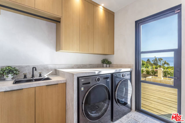 Tucked behind private gates on a flat half-acre, this one-of-a-kind Malibu estate feels more like a sanctuary than a home. The arrival is cinematic, a graceful drive-in/out motor court framed by olive and fruit trees, manicured lawns, and sculpted succulents that lead you into a world of style, calm, and wonder. Inside, over 5,950 sq ft of interiors flow effortlessly through arched hallways, reclaimed Italian limestone, and hand-finished plaster walls. Every room is alive with detail; reclaimed oak floors underfoot, hand-crafted steel windows framing ocean views, and soaring spaces washed in natural light. Each of the four grand bedroom suites is a retreat, with its own spa-like bathroom and walk-in closet, crowned by a primary suite that rivals any five-star escape. The heart of the home is expansive yet intimate: a kitchen dressed in Taj Mahal stone and hand-built oak cabinetry, opening to living spaces designed for both celebration and serenity. Beyond, over 3,000 sq ft of terraces and decks invite endless entertaining, fireplaces flickering under the stars, Moroccan-tiled pool and spa sparkling beside fountains, and wide open views of the Pacific stretching endlessly before you.Every practical luxury has been considered. The home is filled with an abundance of fixtures and amenities, including wine fridges, drinks fridges, freezers, ice machines, and two dishwashers to make entertaining effortless. A dedicated utility room and generous storage areas keep the home seamlessly organized, while the pantry, laid in exquisite Morelon tiles, offers a beautifully appointed space for every culinary and household needs. Below, an entire world awaits. A theatre with popcorn machine, a wine cellar, a speakeasy lounge with DJ booth, and a brass-finished bar carved into rock walls. Every touch has been curated by renowned designer Brittny Button, whose award-winning collection graces the interiors alongside treasures like a 13th-century fireplace and historic Moroccan fountains. Wellness is woven in: a gym, sauna, steam, and cold plunge open to the private pickleball court, with a self-contained Airstream guest house offering the perfect hideaway. Sustainability, comfort, and security are paramount, with a full battery-backed solar system, water purification, clean air technology, Crestron home automation, and a complete camera/alarm system. This estate is more than architecture, it's a feeling. A place where the soul of Morocco meets the magic of Malibu, where every sunset becomes a private painting, and every gathering turns into a memory. Featured in Architectural Digest, Vogue Living, and The Luxury Home Show, it is a creation that simply does not exist anywhere else.